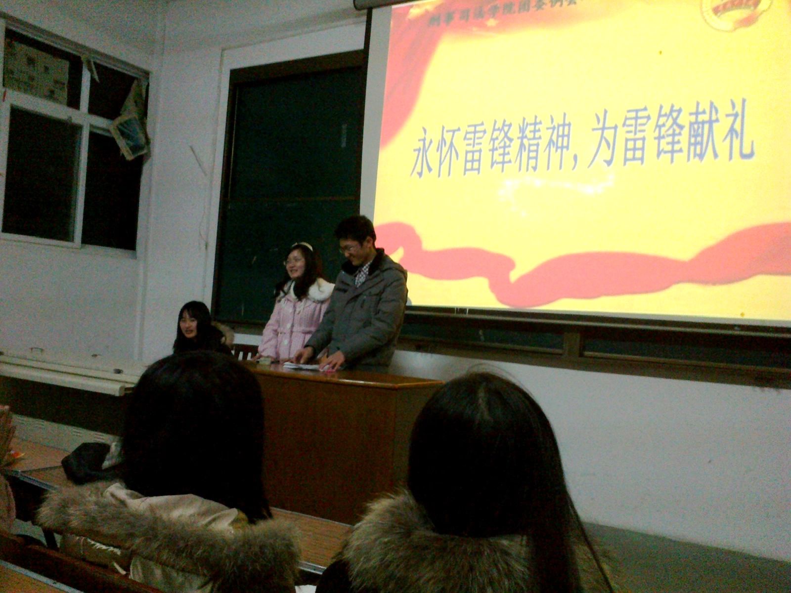 3月3日晚七点半,我院分团委在电教201召开了新学期第一次例会暨"学雷锋”团日活动月启动仪式。本次会议由团委自律部承办,我院团委书记助理陆程、团委四部部长、副部长参加了此次例会。