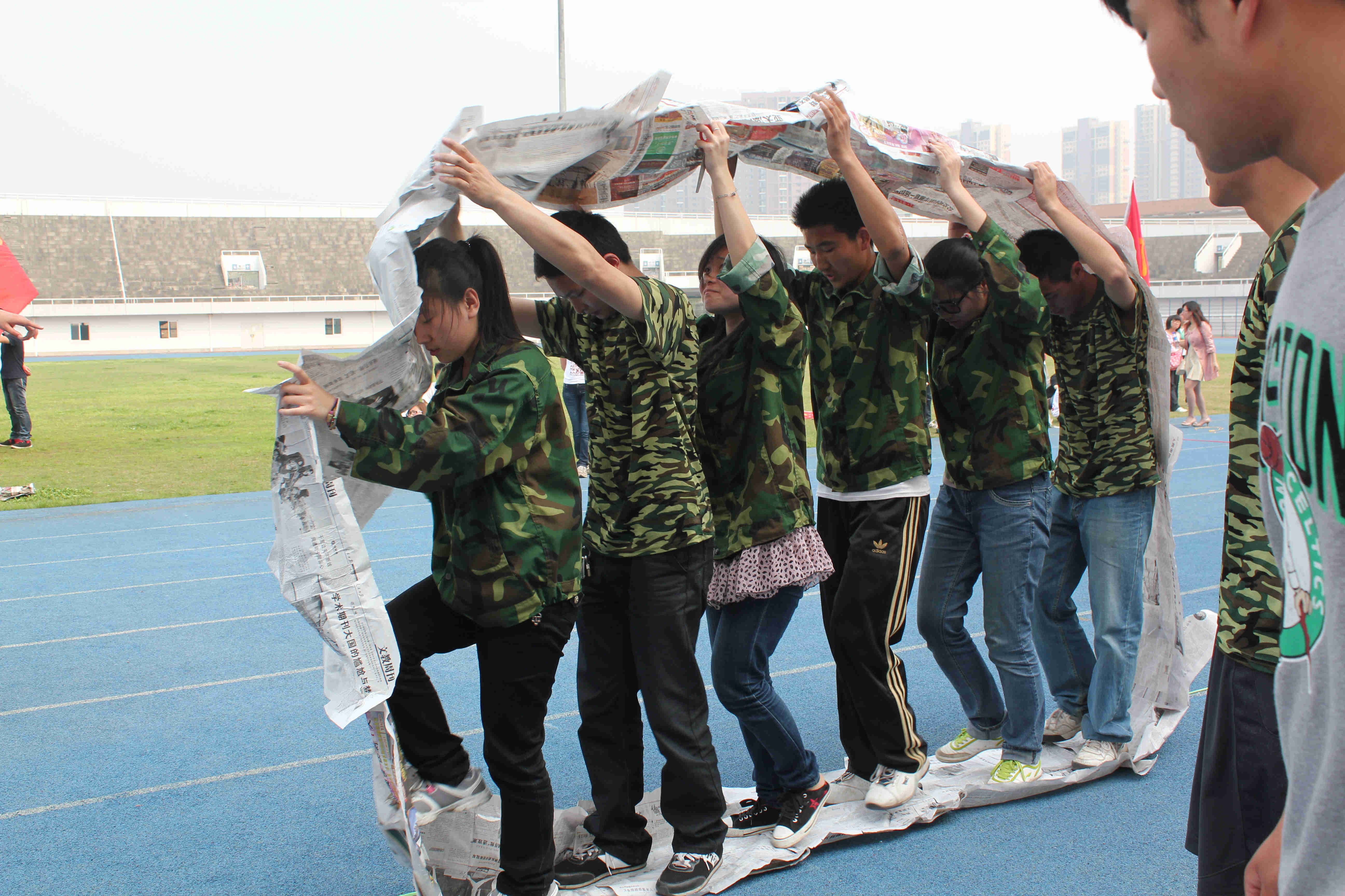 此次拓展比赛,共有包括我院在内的13个学院派代表参加。比赛分为“纠结呼啦圈”、“齐心协力站起来”、“无敌风火轮”和“花样接力”四个环节。高难度的项目对各个团队的配合默契度提出了考验:“纠结呼啦圈”、“齐心协力站起来”需要团结精神,“无敌风火轮”则要求队员们有较好的协调能力,“花样接力”中的踢毽子、跳绳等活动,也同样需要成员们的密切配合。