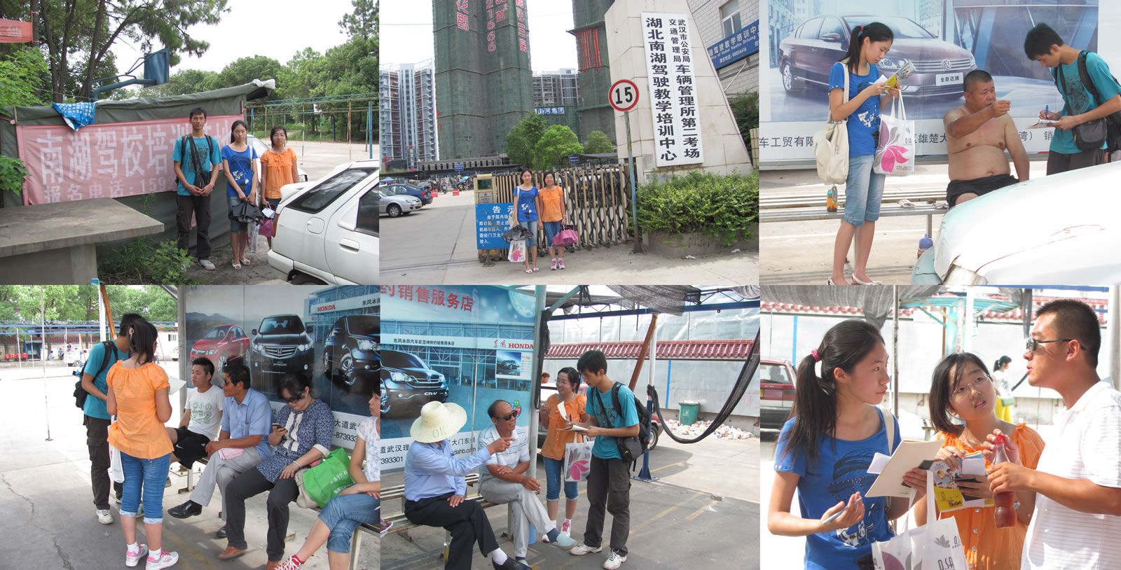 7月8日上午08:30,我院陈镜荣调研实践百折不挠小分队一行首先在原弘博软件园篮球场旁边的南湖驾校十大队训练场,对张利华、张聪两位教练进行了深度访谈,紧接着又于10:30抵达南湖驾校总部,分别同曾教练、李教练、王教练、陈教练四位教练开展了较为简短扼要的访谈,目的在于分析驾驶教练在基于多年的教学经验和驾龄后,对闯黄灯的态度及原因。在与教练的交谈中,我们了解到6位教练中共有5位支持黄灯不可闯,闯黄灯该罚的观点,其中的王教练非常关注武汉市交管局出台的新规定,闯黄灯罚100元,扣3分,也熟悉全国首例闯黄灯的行政案件;但相反,驾校总部的另1位教练认为黄灯就是起缓冲作用,缓冲作用就是可通行,甚至持黄灯的存在意义不大,可取消黄灯的看法。