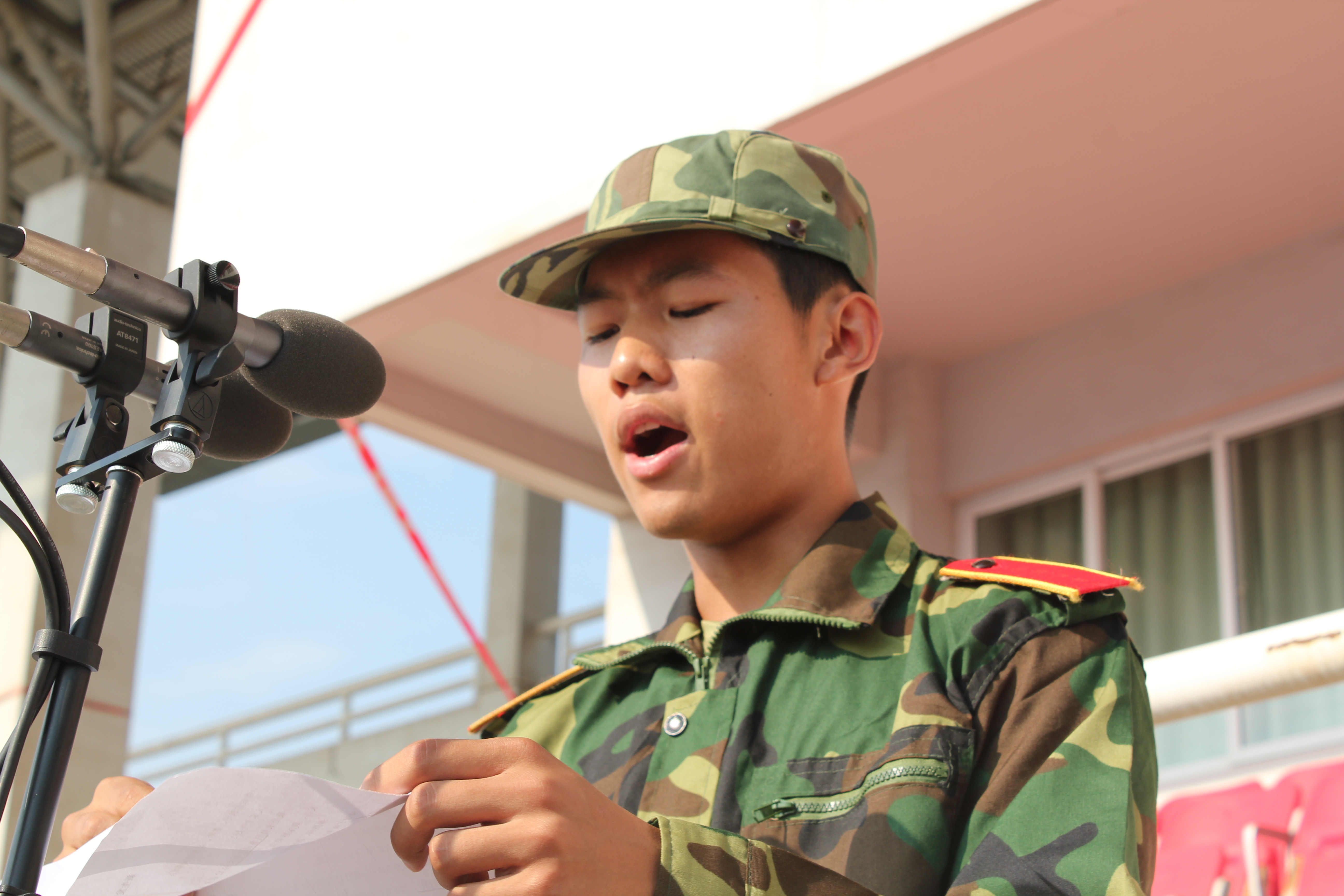 在军训师师长向伟湘讲话后,财税学院刘金焕教授、法学院10级研究生王文忠、留学生学院关税专业大卫先后发言,他们分别表达了学校的决心,研究生的魄力以及留学生的感慨。大会最后,由我院大一新生杨家帅同学代表12级学生讲话,他表明12级新生必将竭尽全力配合教官军训,并会在学校好好完善自己,充实自己,提高自己,做个全素人员。