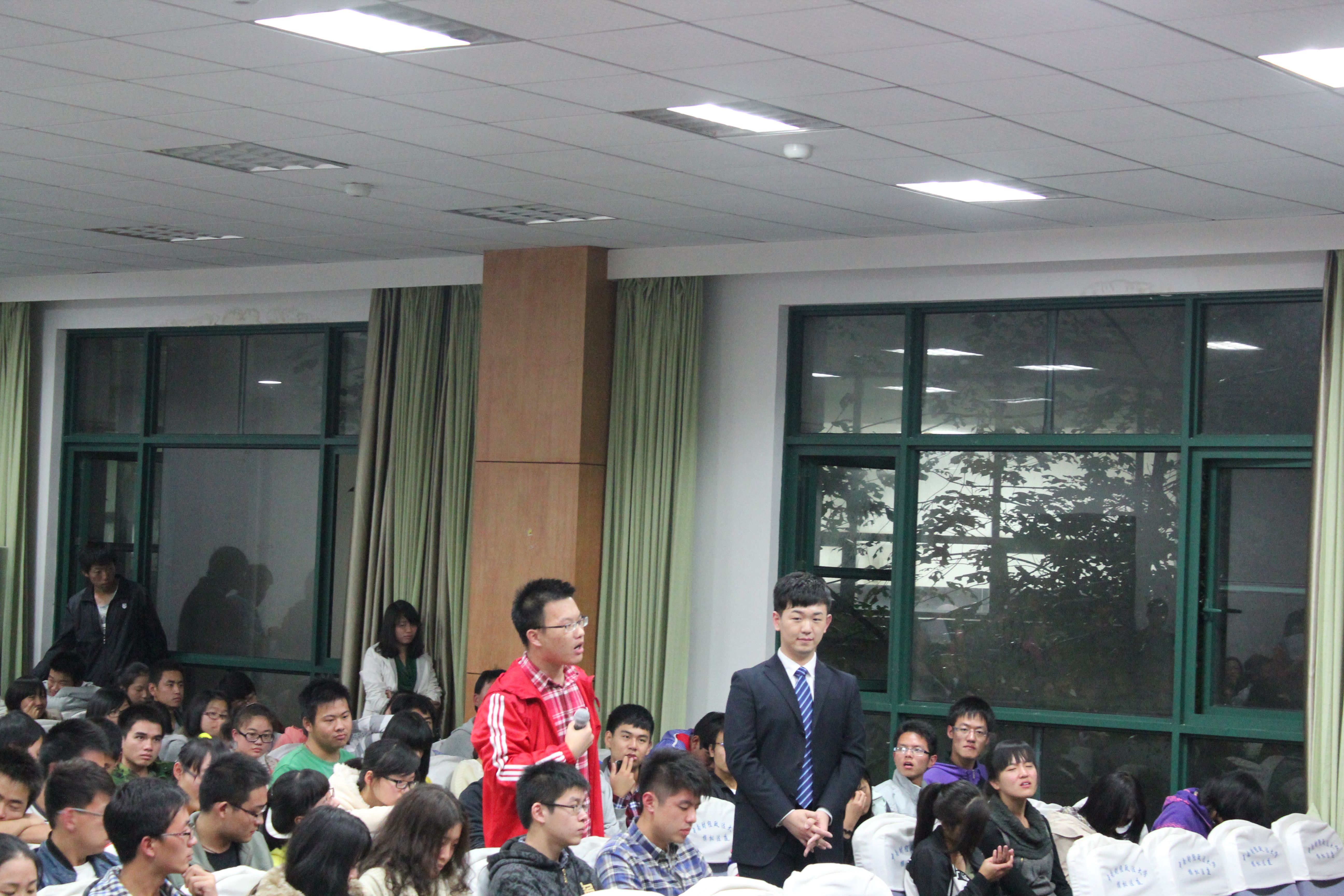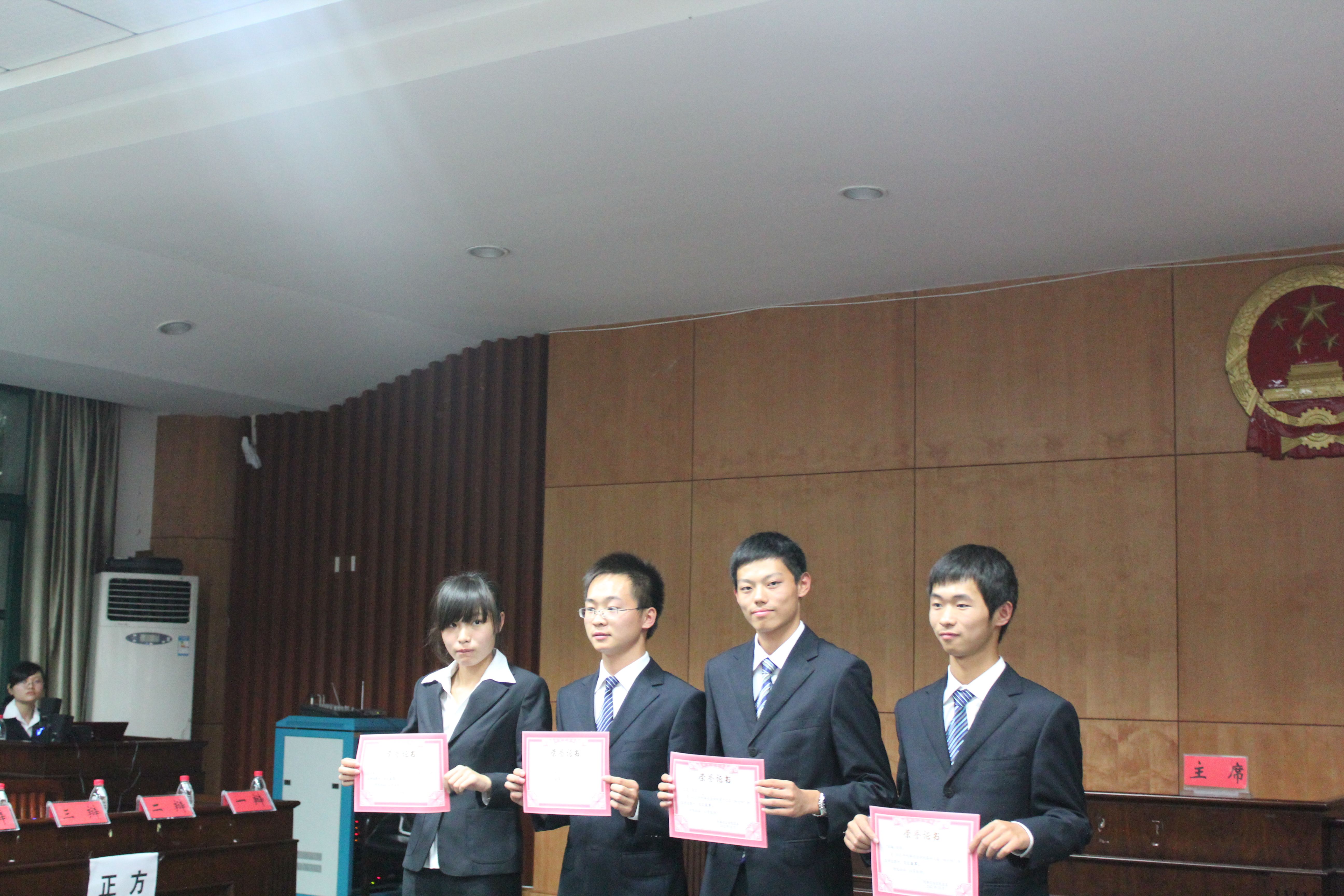 10月25日晚七时,我院第十二届“砺剑杯”辩论赛决赛在文泰楼模拟法庭二准时拉开帷幕。校演讲与辩论协会第21届副会长李剑,25、26届会长严颖,25、26届辩手部部长裴洲剑,院辩论队08级队长田野,校演讲与辩论协会第27届会长、院辩论队09级队长王盛任决赛评委,27届辩手部部长张振哲担任决赛主席。院分团委书记陈楠老师到场观看了此次比赛。