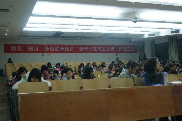 开班仪式在嘹亮的中国共青团团歌中拉开序幕。在主持人对在场嘉宾进行介绍之后,财税学院党委副书记吴凡上台发表讲话,他指出在党的十八大胜利闭幕的背景下,举办这样一个培训班的初衷是“为一批有活力、有思想、有担当的青年人提供一个深入了解马克思主义的平台和机会”,并希望大家借此机会深入学习探讨马克思主义在新的历史时期中深刻的时代内涵,认真学习贯彻党的十八大精神,成为中国特色社会主义建设的后继人才。最后,他宣布青年马克思主义者培训班正式开班。