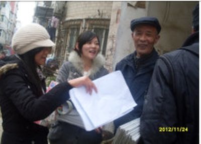 当日清晨,我院志愿者就早早来到五羊广场,虽然寒风习习,但他们热情依旧。7点15分,志愿者全部准时到场,经过副会长郭鹏的讲解与说明,志愿者们都对自己的任务了然于心?;疃兄驹刚呙侨惹楦哒?,他们发扬不怕苦不怕累的精神,微笑面对每一位路人,将小建文的不幸故事向每一个买报的人士作详细介绍,不少爱心人士在听完故事之后,很是同情小建文一家的遭遇,纷纷伸出援助之手。参与校外活动的志愿者们,不顾劳累,穿梭在大街小巷,将爱心在这片天地之间传递。