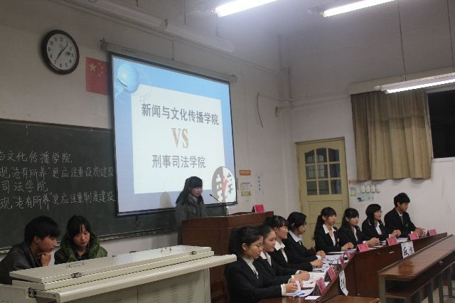 11月29日晚7时,校“希贤杯”学生主题辩论赛八进四复赛在文澜楼109教室准时举行,我院辩论队对阵新闻与文化传播学院。哲学院张莉敏老师,金融学院袁辉老师以及公共管理学院吕国营老师担任本场比赛评委。