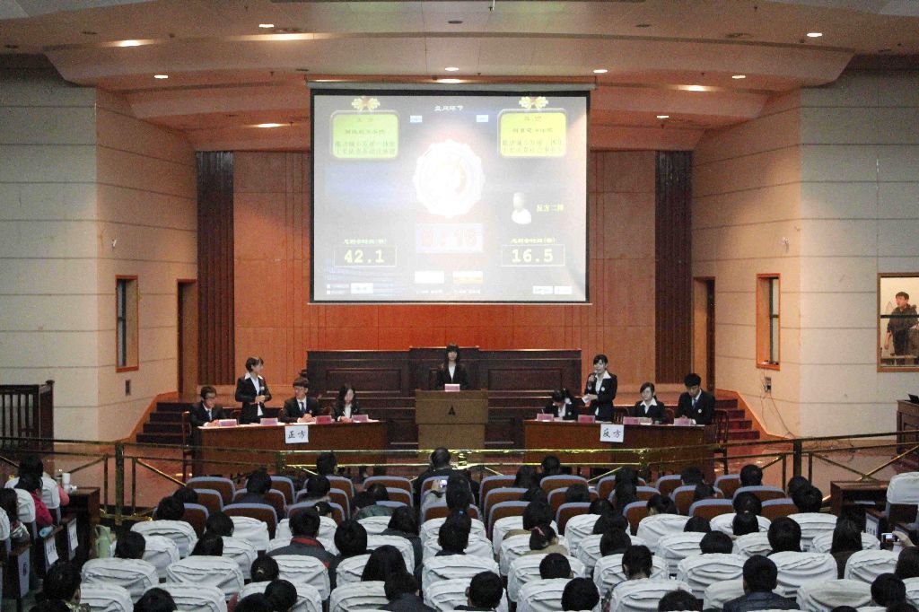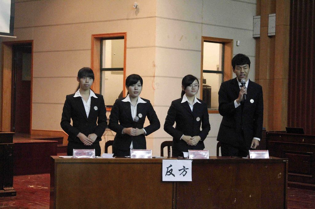 12月6日晚7时,校“希贤杯”学生主题辩论赛半决赛在文泰楼模拟法庭(一)准时举行,本场比赛由我院辩论队对阵财税学院,哲学院张舜清老师,张莉敏老师以及黄士平老师担任本场比赛评委。