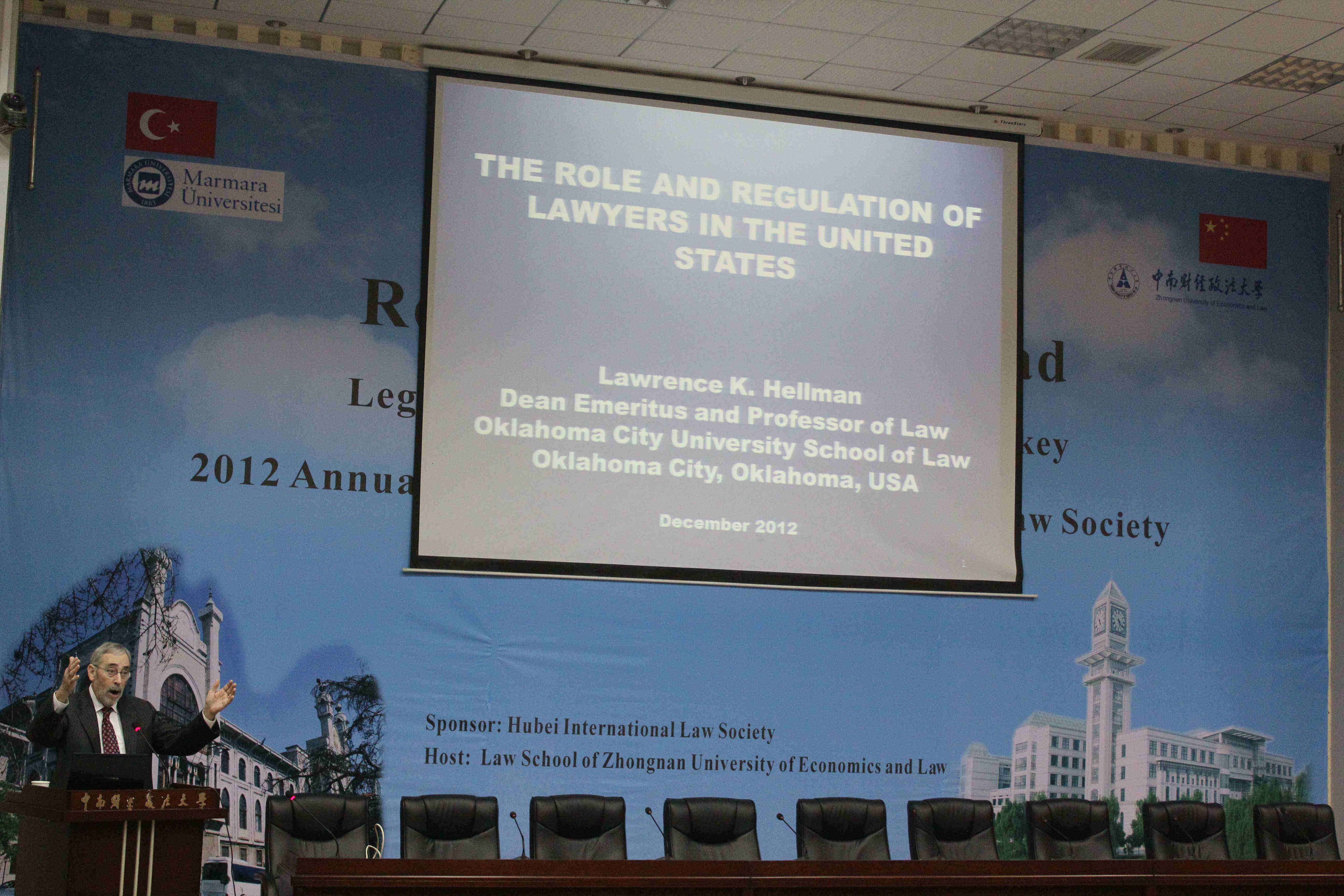 Hellman教授简要阐述成为一名合格的美国律师所要具备的基本条件,分别是学历要求、律师协会的认可与严格的社会背景调查。Hellman教授反复强调律师所应遵守对待客户的诚实(Honestly)与忠诚(Loyalty)这两个原则。美国律师的保密义务至上原则与中国律师的真实义务至上原则是截然不同的,而这也正体现了中美两国在法律价值方面的各自取舍。Hellman教授最后通过精彩的视频介绍了美国奥克拉荷马城市大学,几位曾到这个学校学习的同学也对其进行了详细介绍,并鼓励有兴趣、有条件的同学走出国门接受多元教育,体会多元文化。