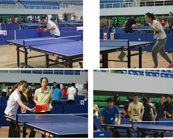 比赛过程中,我院乒乓球队队员王超在男子单打项目中表现出色,在八强赛中面对多名强劲对手依然发挥稳定,为我院取得第四名的好成绩。此外,在女子单打项目中我院女将也是发挥神勇,有3名队员打入八强。其中陈思益同学以第二名的优秀成绩直接打进决赛,王晨同学则取得了第五名。在双打项目中,我院乒乓球队队员陈思益和王晨带领的两个组分别战胜哲学院和金融学院挺进四强,并在随后紧张而激烈的决赛中分别以0:3和3:2 的成绩战胜法学院和会计学院获得第二、第三名。而在男子双打四强的最后一个名额争夺赛中,我院队员程傲朦和杨阳经过5局大战,在最后一局与对手10:10平手的时刻表现得十分冷静,连续抵挡住对手几次大力抽杀之后轻巧地推球得分,让对手措手不及连失2分,最终以12:10赢得第5局,进入四强,并在决赛中以3:0战胜统数学院勇夺第二名。