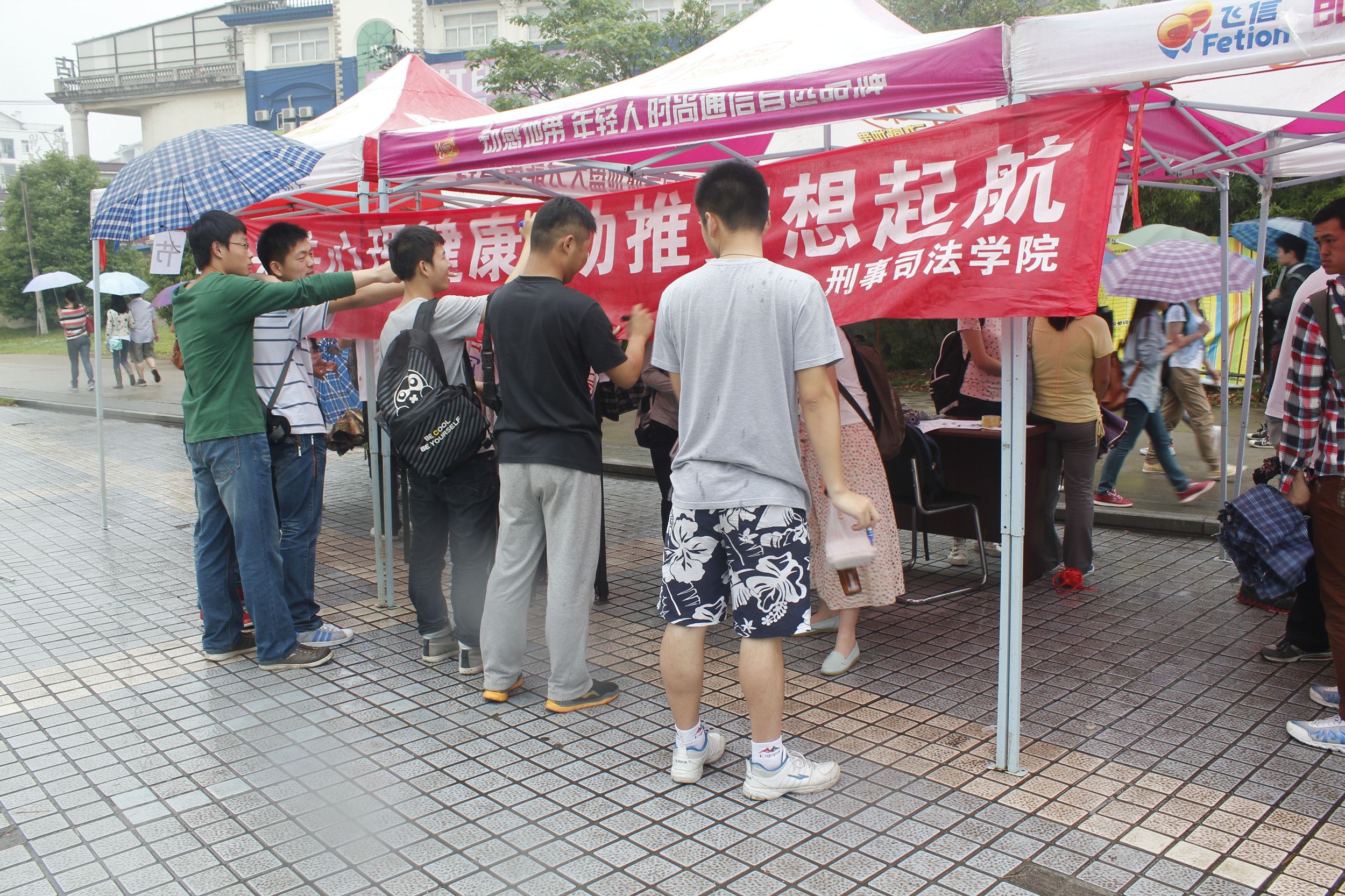 虽然天有阴雨,但却丝毫阻挡不了同学们参与活动的热情。工作人员积极的讲解和介绍吸引了众多来往学子,现场气氛十分热烈。除了宣传心理健康知识外,现场还开展了一系列小活动:“最想看的电影”推荐,心理健康益智问答,考验心理能力的“瞎子走路”小游戏等。这些活动增强了大家重视心理健康的意识,让人印象深刻。而参与人气最高的则是“梦想书信”活动,同学们写出他们心中的理想交由心理咨询站保存,若干年后可来领取,看看自己曾经的梦想。“在未来看到曾经自己的梦想肯定会得到一种鼓舞人心的力量。”一位参与该活动的同学如是说。