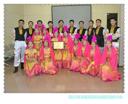 接着就是大家期待已久的研究生风采大赛。时尚、动感的开场舞极大地吸引了在场观众的眼球,各个学院的研究生也相继开始了精彩绚丽的风采展示。本次大赛内容丰富、形式多样,融合了舞蹈、歌曲、小品、舞台剧、器乐表演等,各个学院的表演别具一格,令人赏心悦目。我院选送的节目《黑骏马》是哈萨克民族舞,在第十三个出场,经过一番耐心等待,我院二十位俊男靓女,身着哈萨克民族的传统服装,隆重登场,男生身姿矫健,女生婀娜多姿,踏着奔腾的鼓点,舞动青春的旋律,充分展现了民族风情,带来了新鲜、震撼的视觉享受。一曲终了,我院啦啦队员齐声欢呼,现场观众也报以热烈的掌声,现场气氛十分活跃。
