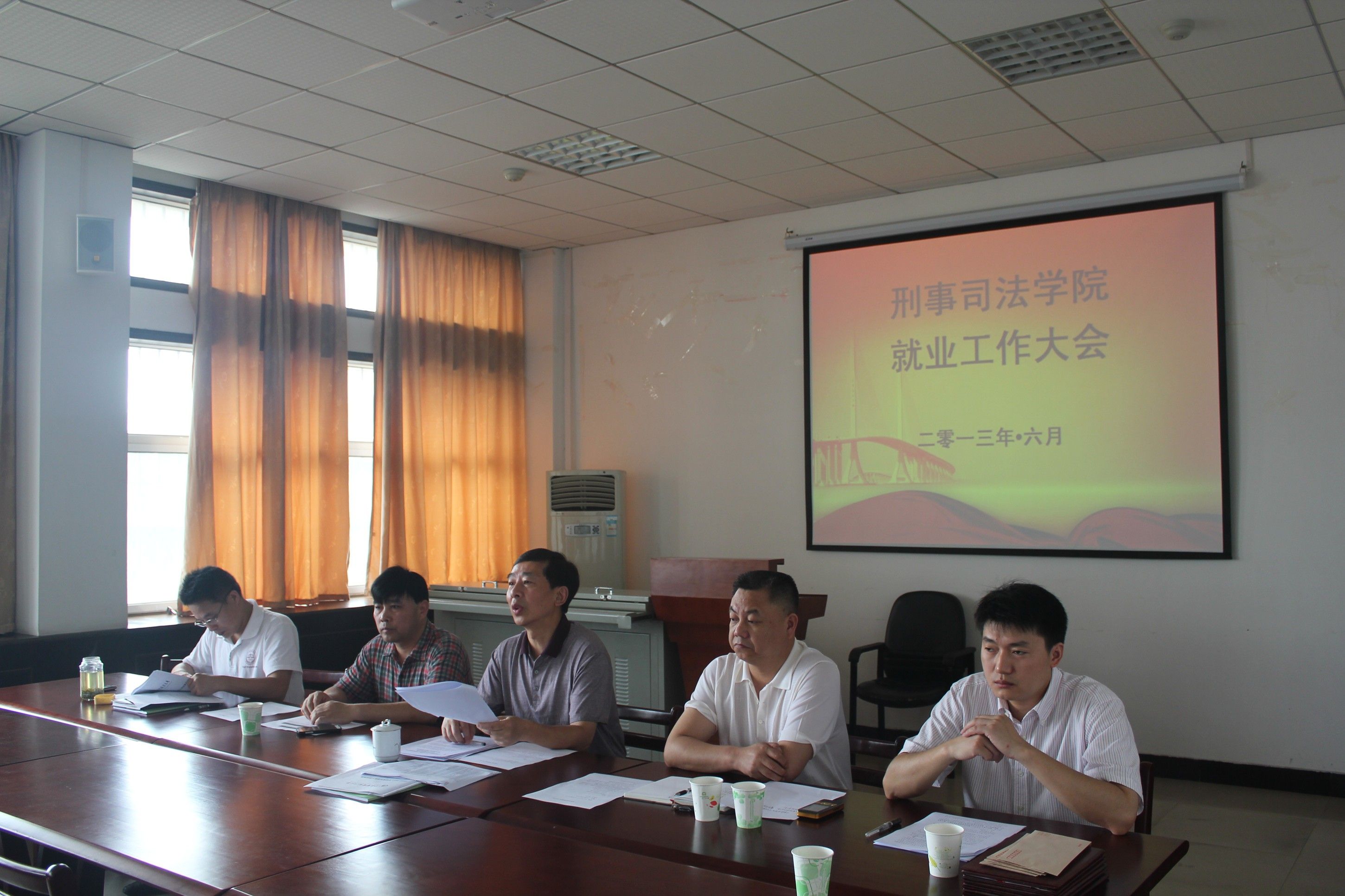6月9日上午8点半,我院就业工作会议在文治楼二楼会议室顺利召开。校就业指导服务中心汪平主任、我院院长夏勇教授、党委张从发书记、党委向前副书记、副院长童德华教授以及我院全体教师均出席了本次大会。