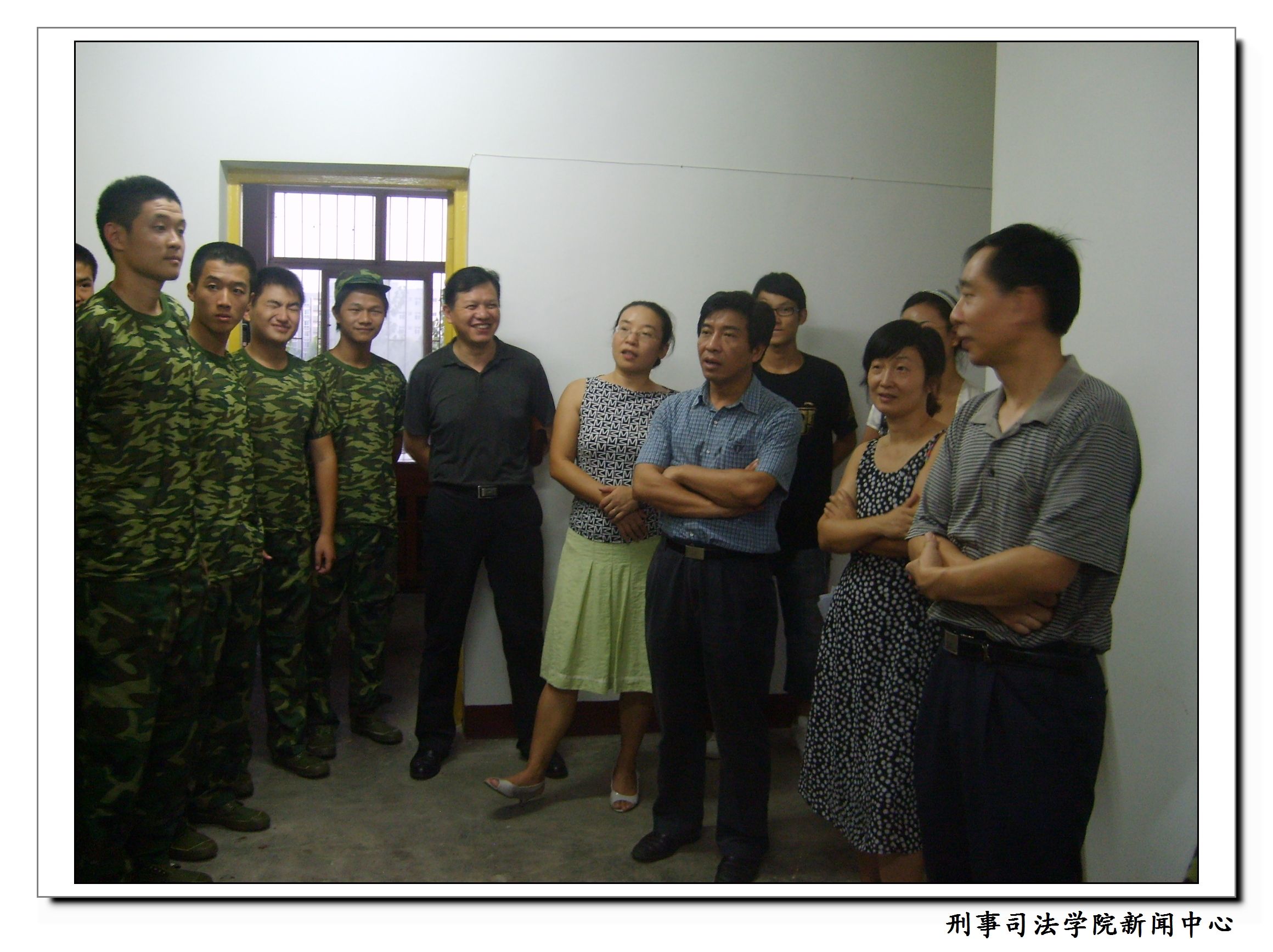 刑事司法学院夏勇院长、院党委武身汉书记、胡向阳副院长、苏彩霞副院长、院党委王延副书记以及09级辅导员万里雪老师和向敏老师一行深入新生宿舍,一一询问新生对学校生活的适应情况,教导同学们如何进入大学生活的角色,和同学们聊家常,气氛融洽,新生们精神风貌良好。