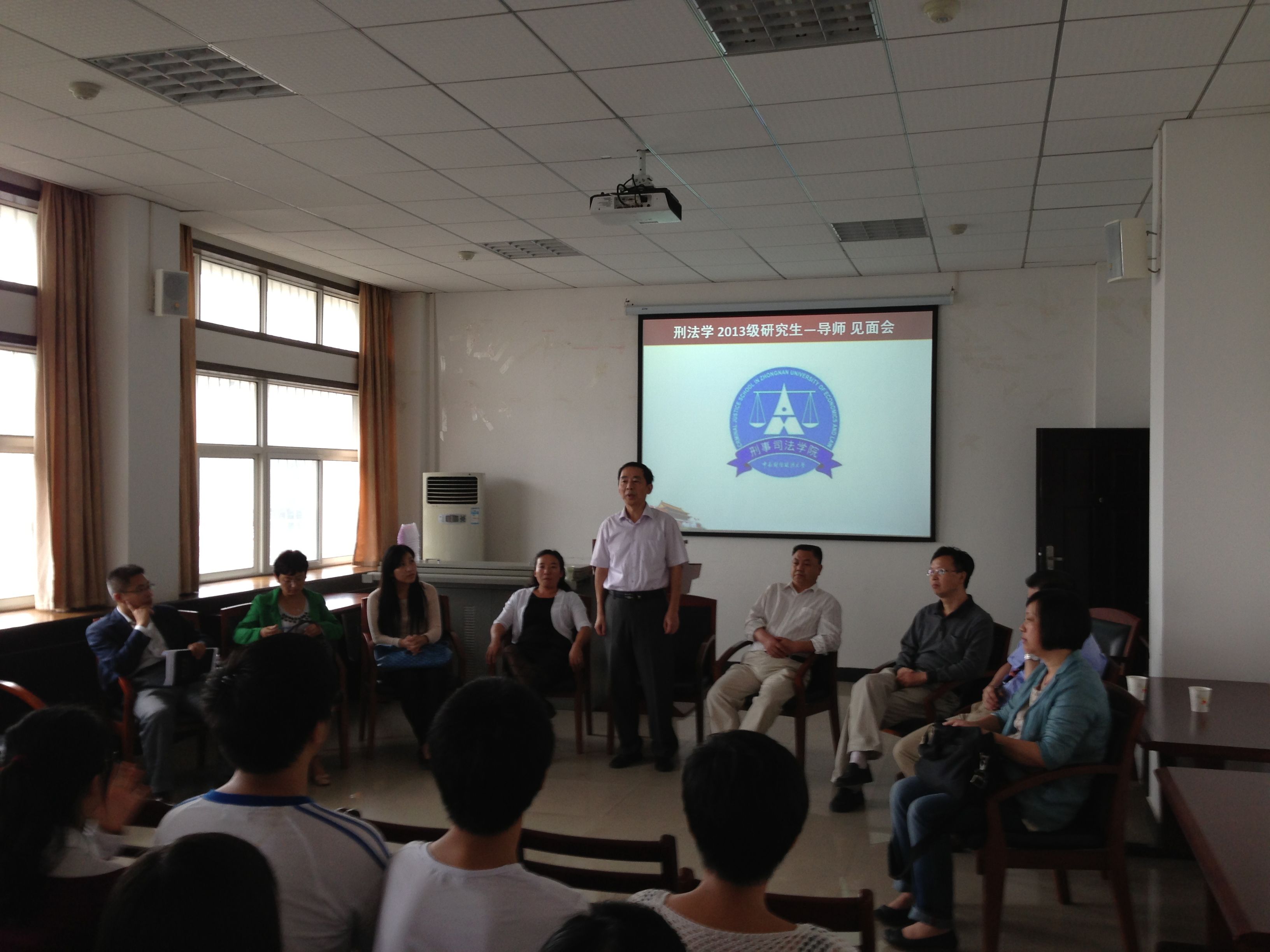 2013年9月6日下午两点,刑事司法学院2013级刑法学研究生导师见面会在文治楼204会议室顺利召开。出席此次见面会的有院长夏勇教授、学院分党委书记张从发同志、博士生导师苏彩霞教授、博士生导师童德华教授和刑法学其他导师,及2013级刑法学硕士、博士研究生。见面会由童德华教授主持。