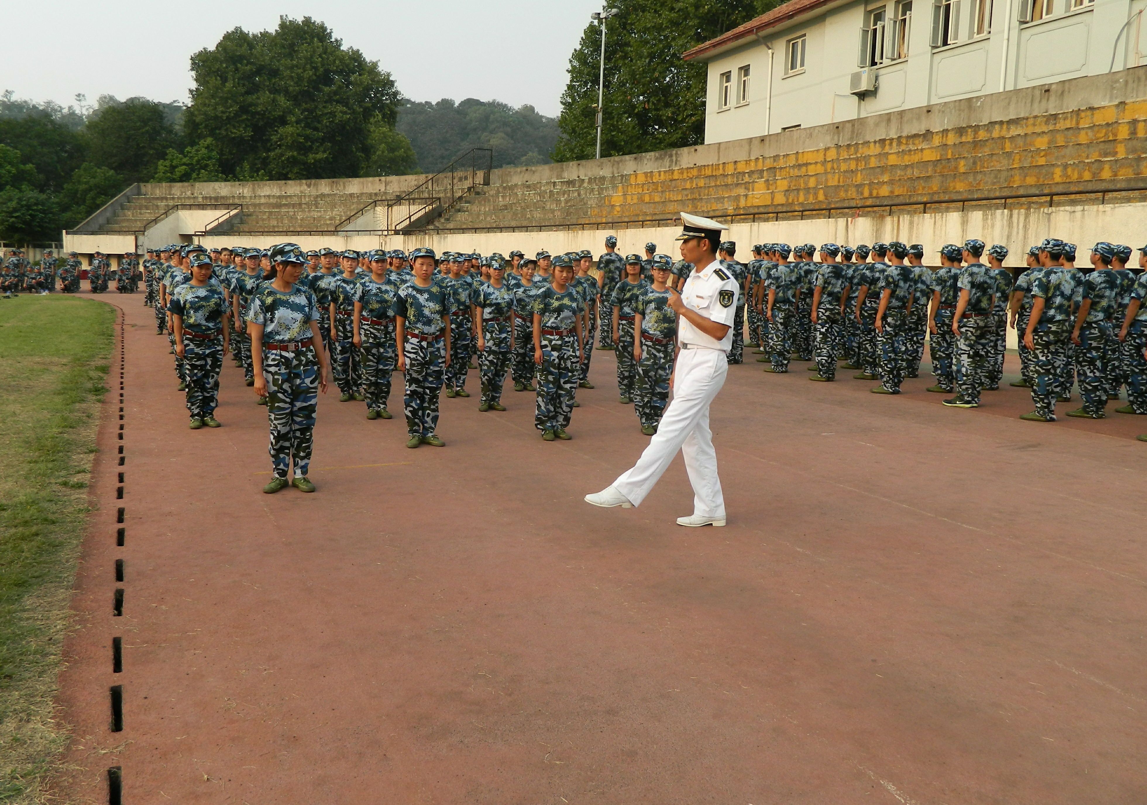 海军军官们严格要求,不时亲自示范,纠正基本的动作。同学们仔细学习,尽管汗如雨下,也没有半点偷懒。远望过去,他们穿着统一的迷彩装,是整齐的方块队。当走近时,记者看到那站军姿的笔直身体,走正步的有力步伐,无处不彰显威武英姿,展示出我院别样的风采。