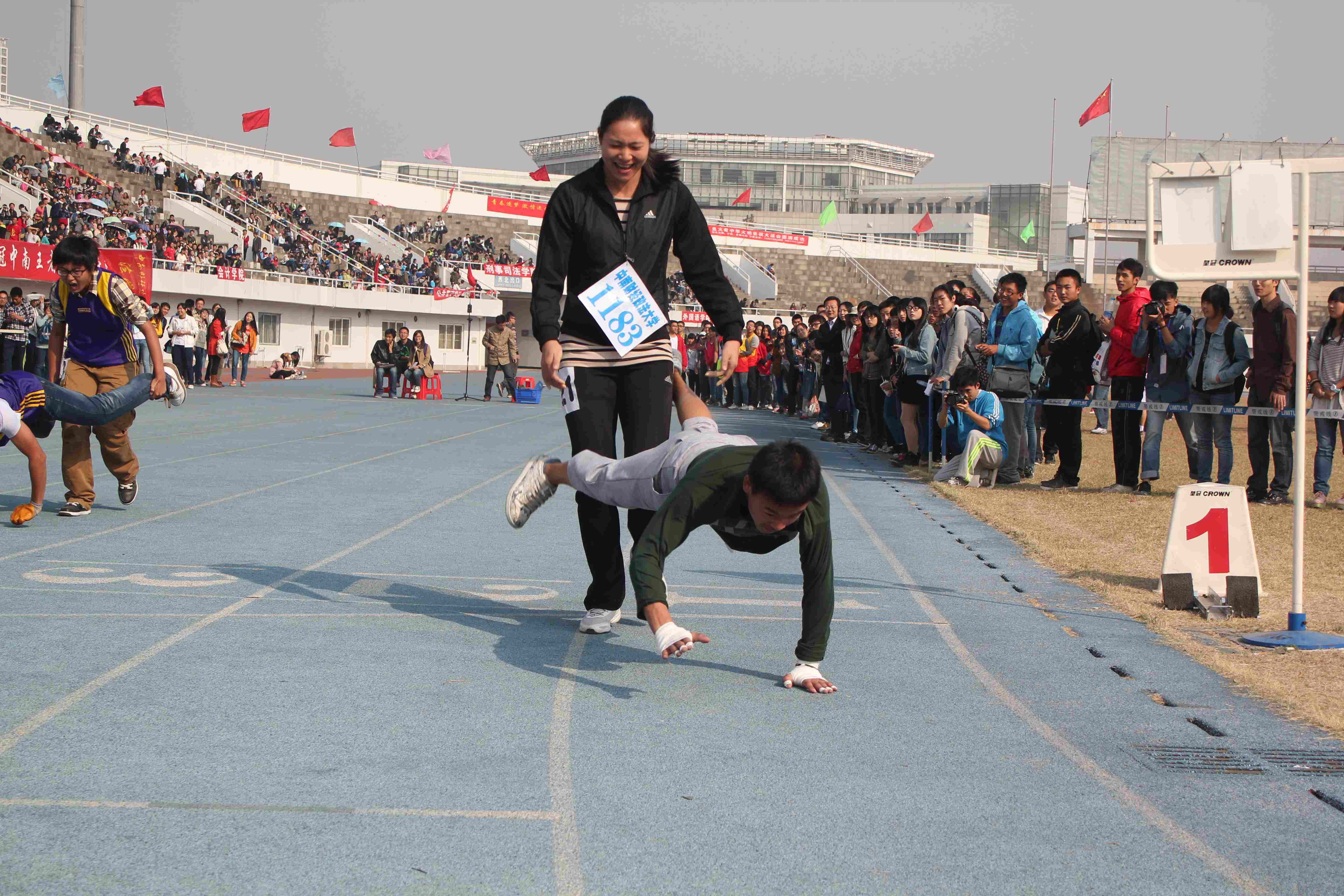 在团体合作项目20*60米接力赛中,哨声刚落,我院第一棒选手便奋力前冲并一路领先,但在传递最后一棒时不慎掉棒,给了对手反超的机会。虽然最后一名选手努力弥补失误,但最终仍然惜败。