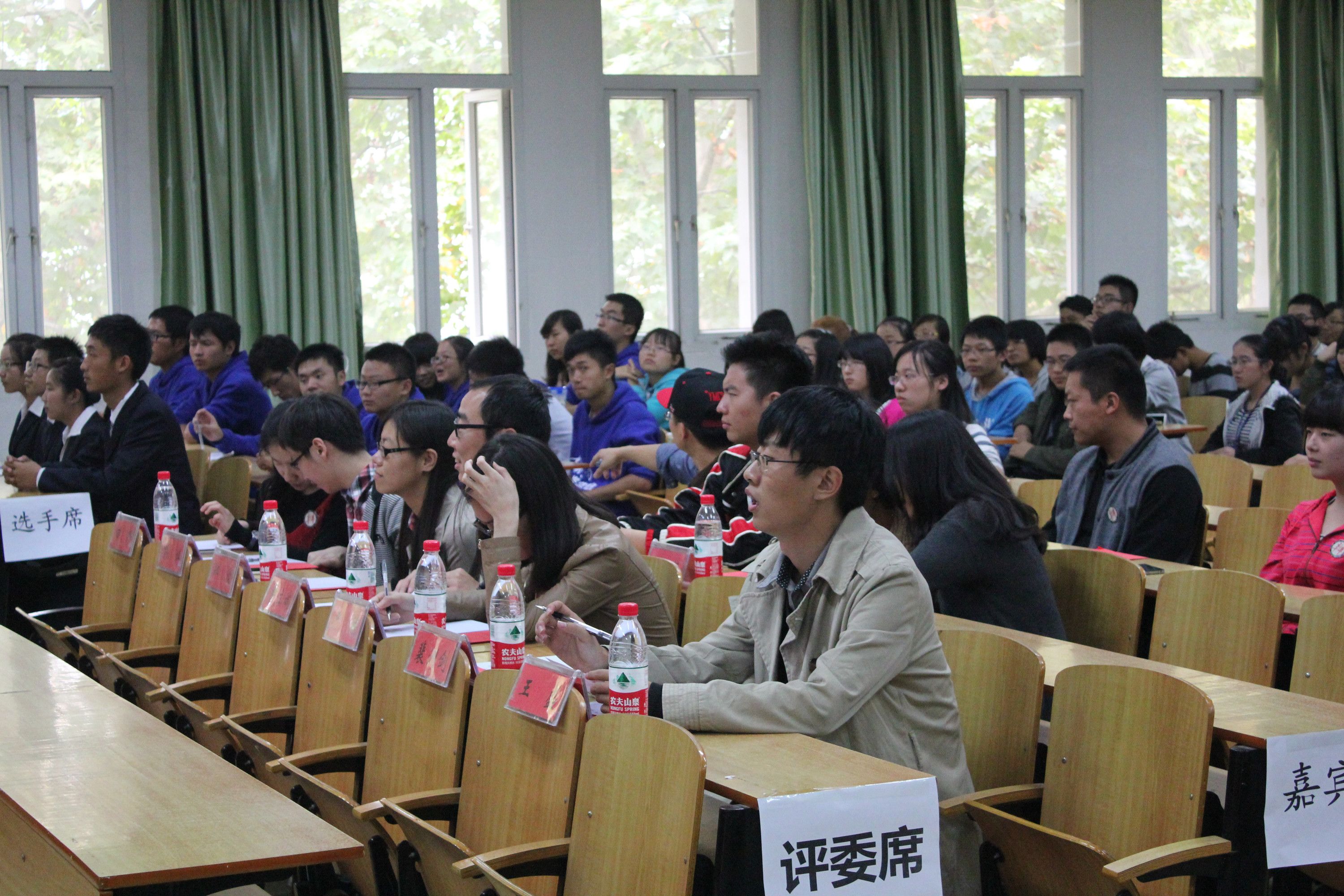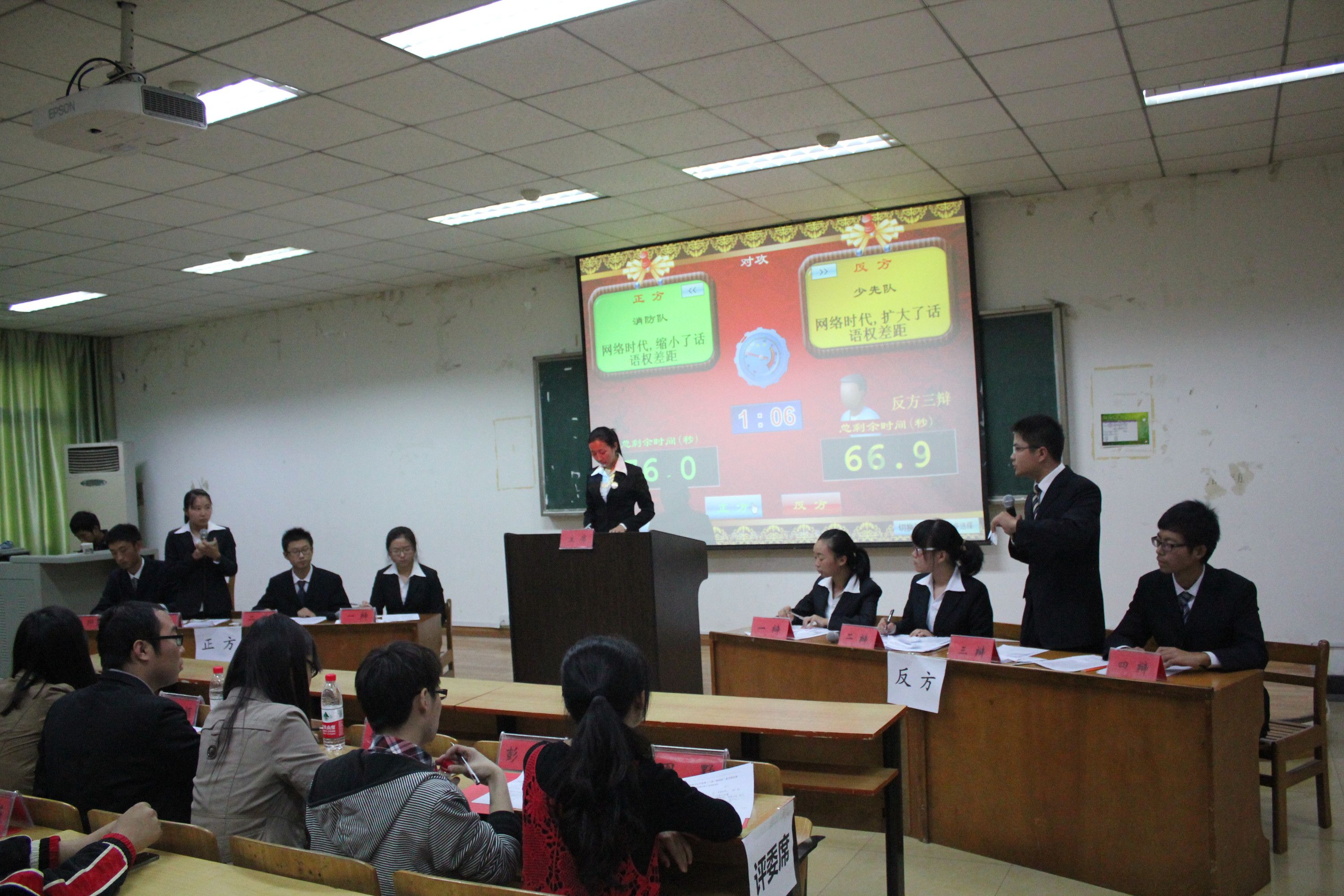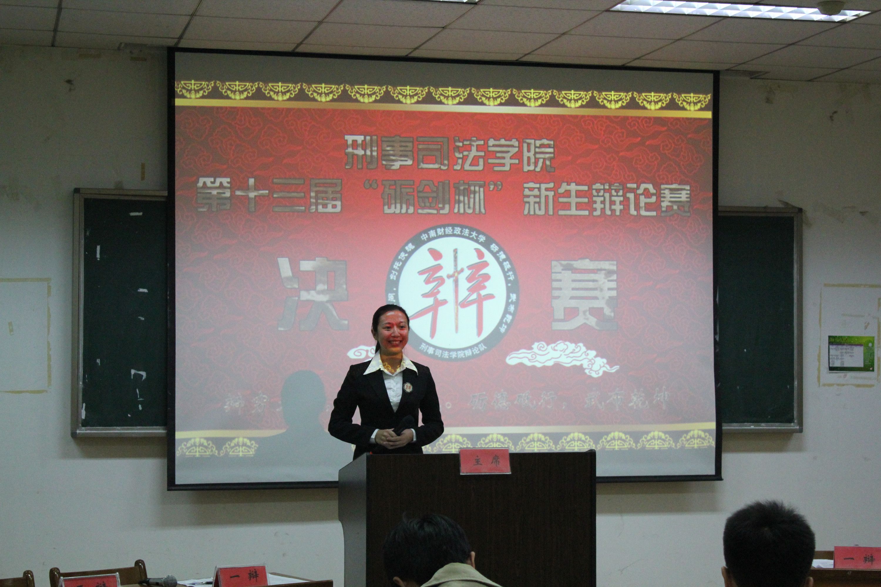 10月27日下午两点半,我院第十三届“砺剑杯”决赛在首义校区文润楼303教室如期举行。决赛主席由院辩论队11级优秀辩手孙经纬担任,我院代理分团委书记陆薇老师亲临本场比赛现场。决赛的各位评委分别是:校演讲与辩论协会第21届秘书长曹立斌,第25、26届会长严颖,第25届副会长郑欣,第25、26届辩手部部长裴洲剑,第25届辩手部部长彭博,以及我院08级辩论队首任队长田野,09级队长王盛。