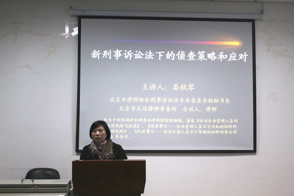 11月29日晚7点文治楼二楼会议室,我院校友律政佳人娄秋琴律师回母校谈新刑事诉讼法下的侦查策略和应对。
