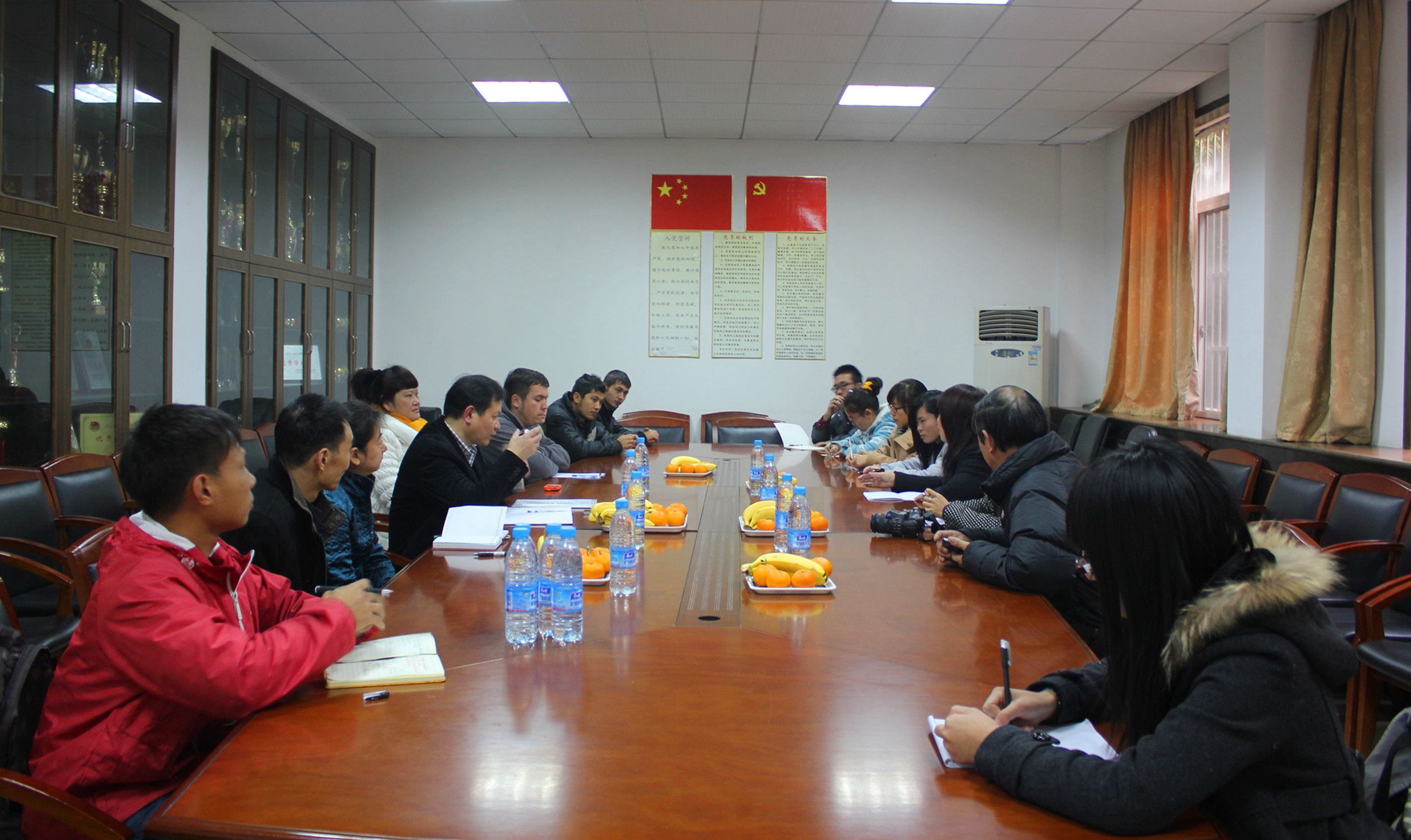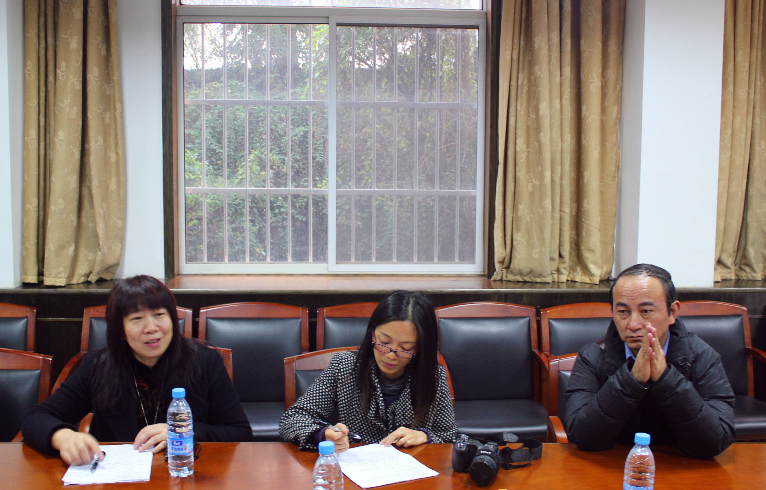 12月4日下午4时,我校外国语学院大学英语部主任梁小华、副主任刘荣国、教学秘书解小薇一行3人来我院就大学英语教学相关问题进行调研。副院长胡向阳教授、教学办匡华老师、学办主任刘茂盛老师、11级辅导员厚今老师以及本科生代表参加了本次调研座谈会。