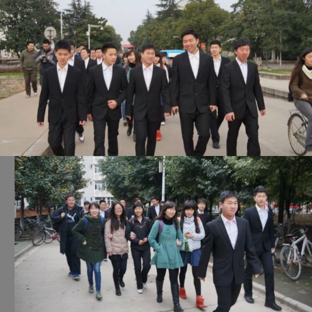 3月7日清晨,我院职侦1201班的男生就为本班女生制造了惊喜。全体男生统一身着黑色西服和白色衬衫在女生寝室外等候,护送本班女生上课,甚至喊出了“女生节有我们陪伴你们不孤单”的霸气口号。这使被护送的职侦班女生脸上笑开了花,有女生表示这将成为她们最难忘的一个女生节。感动的不仅是职侦班女生,一路上,有不少女生因为这一浪漫场景驻足拍照,她们不禁羡慕地感叹:“好浪漫好幸福。”