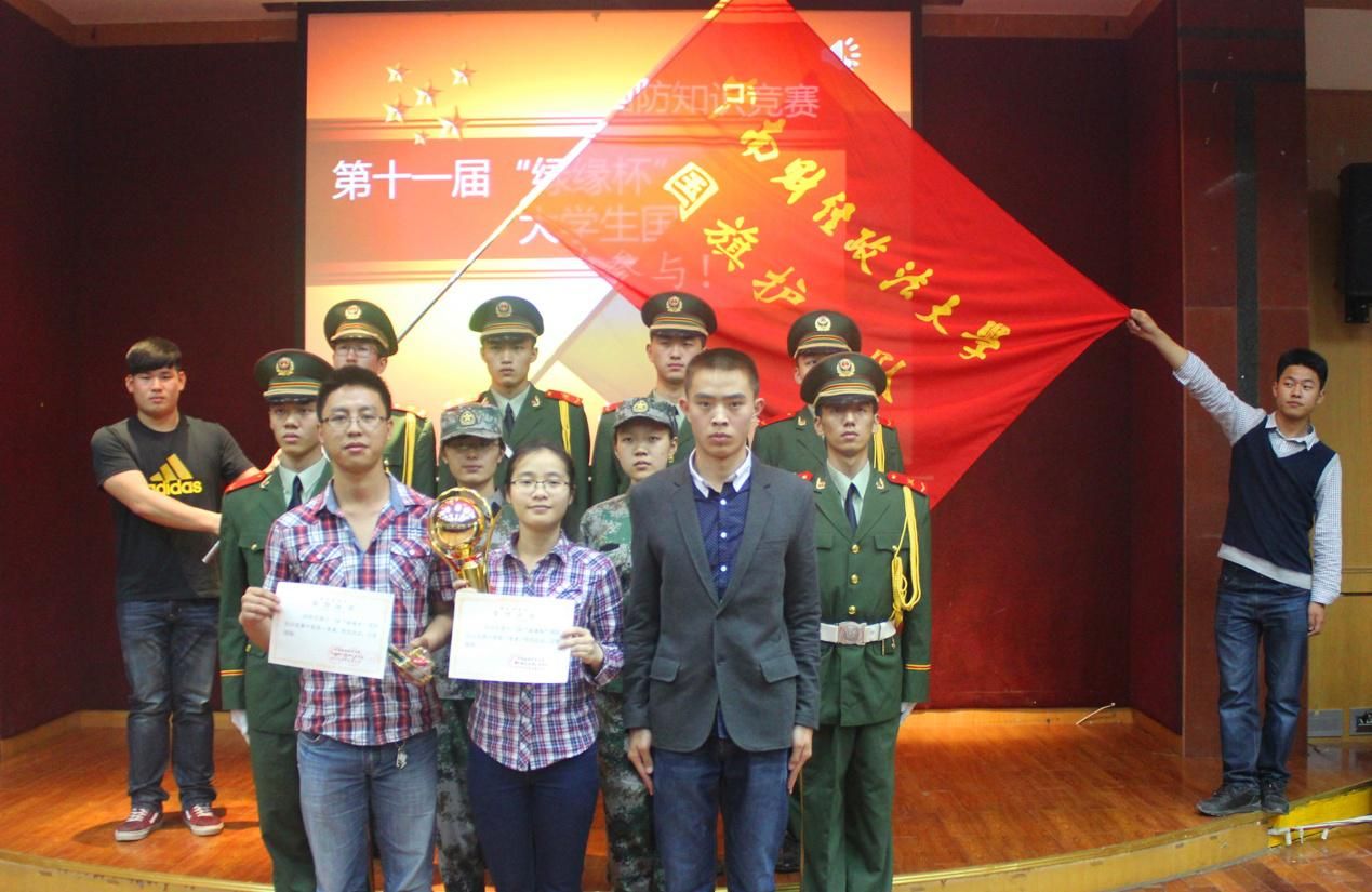 4月10日下午两点三十分,第十一届“绿缘杯” 大学生国防知识竞赛决赛在文潭楼四楼报告厅精彩开赛。本场比赛评委和嘉宾分别是中国人民解放军洪山区人民武装部政委李俭明中校以及政工科长赵磊少校,校学工部副部长王前哨老师,人武部部长胡万松老师,学生国防教育协会许平老师。我院国旗护卫队担任大赛仪仗礼仪,国旗护卫队队员身着军装,笔直的军姿成为大赛一大亮点,赢得了老师和观众们的一致好评。