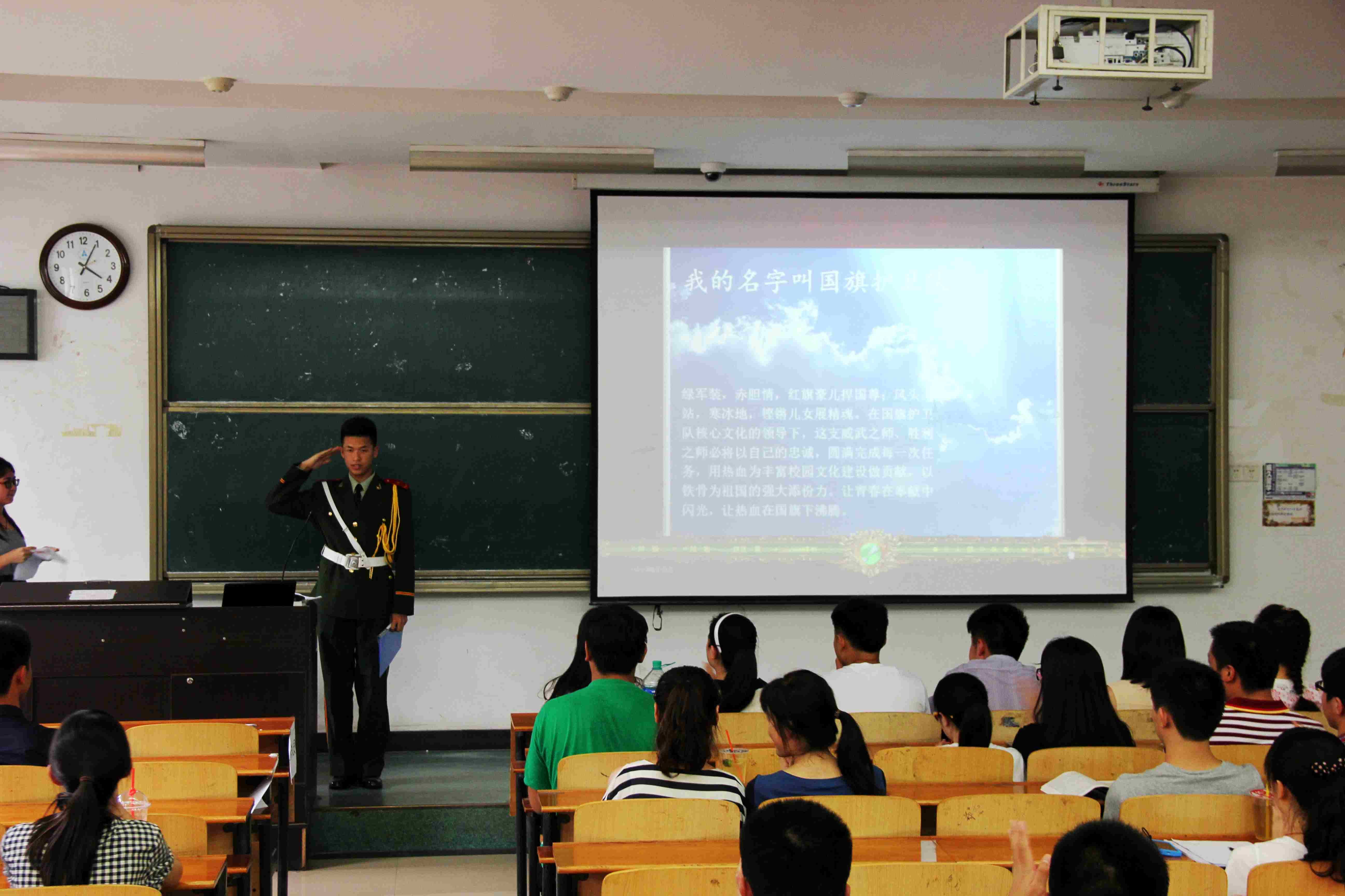 伴着雄浑的国歌声,大会正式开始。首先,主持人带领与会人员回顾了我院2013-2014学年的主要事件。从军训到运动会再到辩论赛直至山音竹韵等等,各类学生活动精彩纷呈,勾起了在座的每位学生的回忆,点燃了在座每位学生的热情。接着,获得第五届“感动校园”称号的国旗护卫队进行展示。队长王愿至、张梦理向大家展示了国旗护卫队取得的骄人成果以及其背后不为人知的艰辛。他们不畏严寒酷暑、始终坚持如一保持高强度训练,他们所展现出来的不懈拼搏、坚强奋斗的刑司精神赢得现场阵阵掌声。