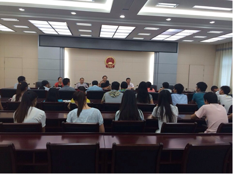 8月12日上午10点,胡院长一行4人来到黄冈市人民检察院,与黄冈市检察院相关领导组织召开了实习座谈会。黄冈市检副检察长魏竟成与政治部、公诉处、反贪局、反渎职侵权局、侦查监督处等处室负责人以及我院黄冈实习分队全体实习生共同参与了本次座谈会。会上胡向阳副院长首先对黄冈市人民检察院给予我院教学实践工作的大力支持表示了感谢,希望进一步深入院检合作。随后,检察院各科室负责人纷纷对本次实习生的表现给予了高度评价,并且就学生实习工作发表了自己的感想和建议。最后实习生代表陈述了各自在实习过程中的心得,也借此机会向学院的教学实践工作提出了一些具体的建议,胡院长与魏检就上述建议、问题与实习生们进行了良好的互动,会议气氛热烈而融洽。