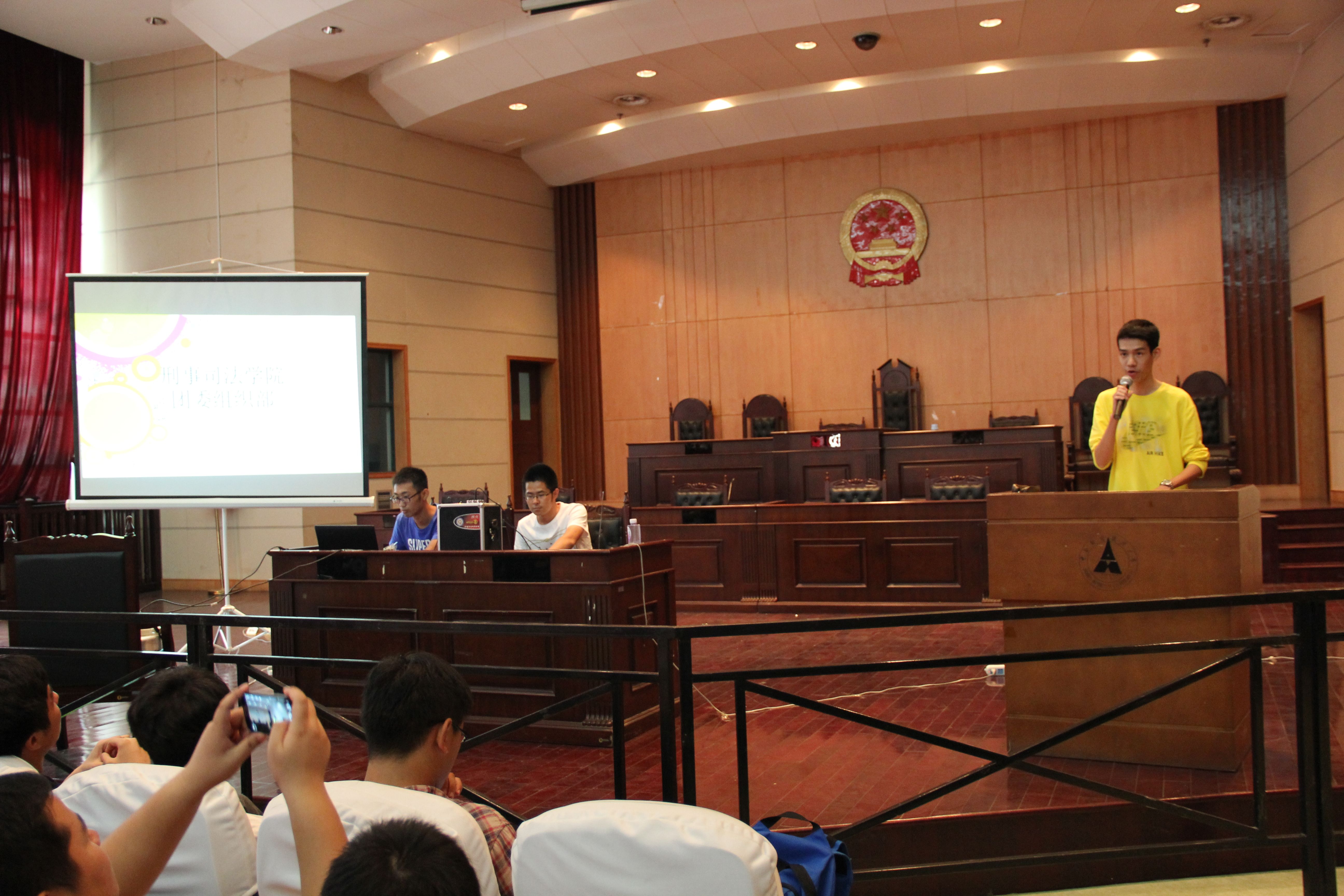 9月21日中午12时30分,我院2014级团、学、新、志、辩招新宣讲会在文泰楼模拟法庭(一)准时举行。本次宣讲会旨在向2014级新生介绍我院团、学、新、志、辩五大学生组织的部门结构及职能工作,展现部门风采,为日后招新工作的展开奠定基础。出席本次大会的有院分团委书记兼14级辅导员赵轶老师、分团委副书记张艳焯、学生会主席侯天一、新闻网络中心主任卢昱、志愿者协会会长张钚尧、辩论队第五任队长刘欣培及各部门部长。