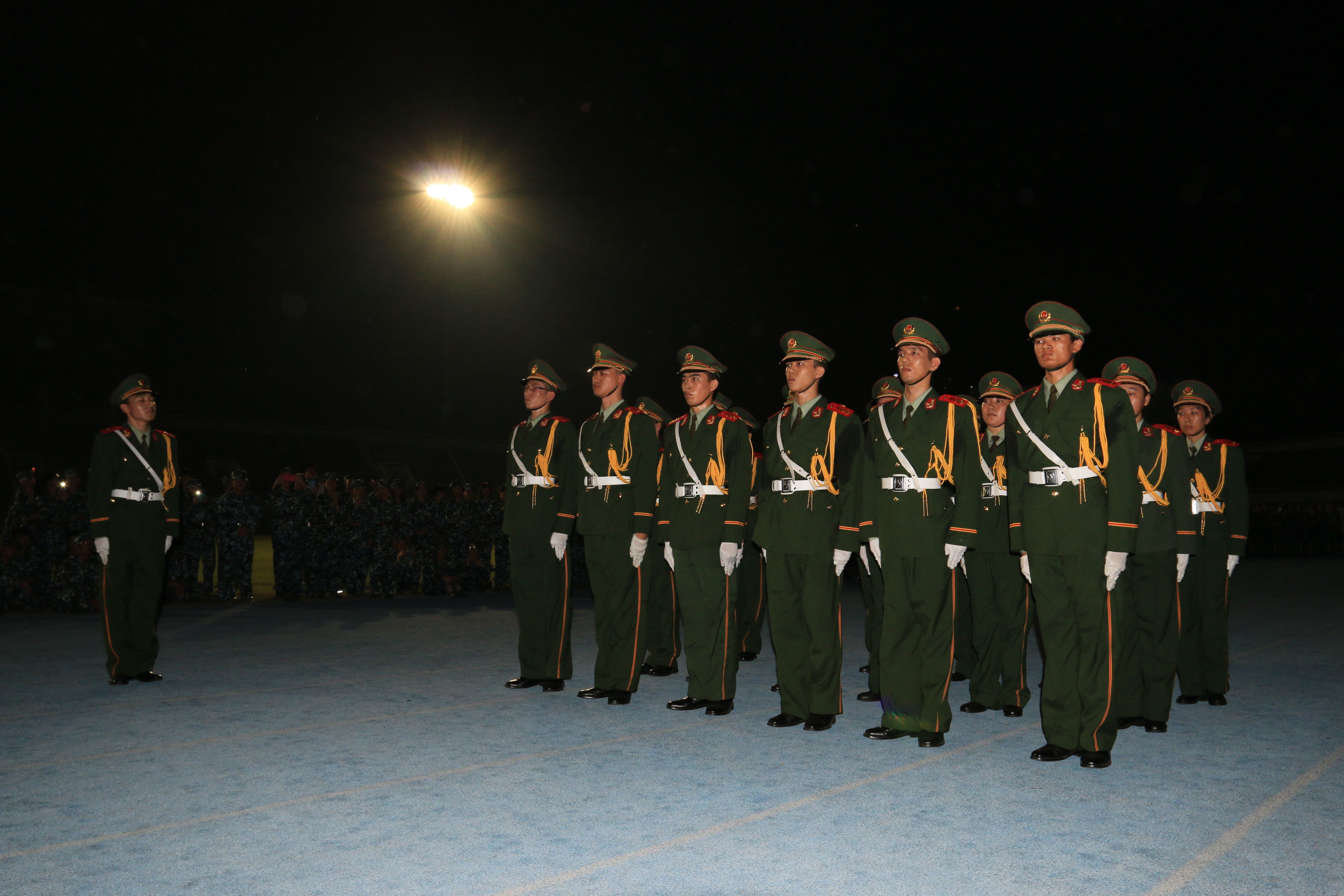 当晚7点半,我校国旗护卫队在新体北通道集合,随着口令的下达,国旗护卫队的队员们身着军礼服,迈着整齐的步伐前往新生军训场地,并在主席台前进行了包括稍息立正等七个科目的展示。整齐的步伐,铿锵的口号,赢得了新生的阵阵喝彩。但是在荣耀的背后,隐藏的是国旗护卫队每天训练所付出的心血和汗水。