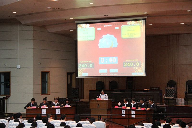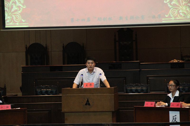 10月26日晚七点整,我院第十四届“砺剑杯”新生辩论赛决赛在文泰模拟法庭一如期举行。院党委副书记向前老师和代理分团委书记兼14级辅导员赵轶老师均莅临现场观摩比赛。担任本场比赛的评委有:2007国际大学生群英辩论赛冠军队成员、校演讲与辩论协会第21届秘书长曹立斌博士,中南民族大学辩论队教练锁满孙星,华中科技大学法学院辩论队前队长张毅轶,我校演讲与辩论协会第25届副会长郑欣、第25届辩手部部长彭博,我院08级辩论队首任队长田野、09级队长王盛。决赛主席由院辩论队11级优秀辩手孙经纬担任。