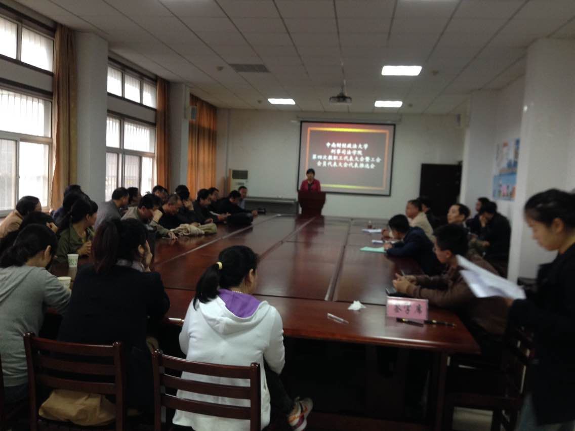 2014年10月30日星期四,我院于文治楼211召开刑事司法学院第四次教职工代表大会暨工会会员代表大会代表推选会,会议由党政办公室朱俊红老师主持,全体教职工出席本次会议。