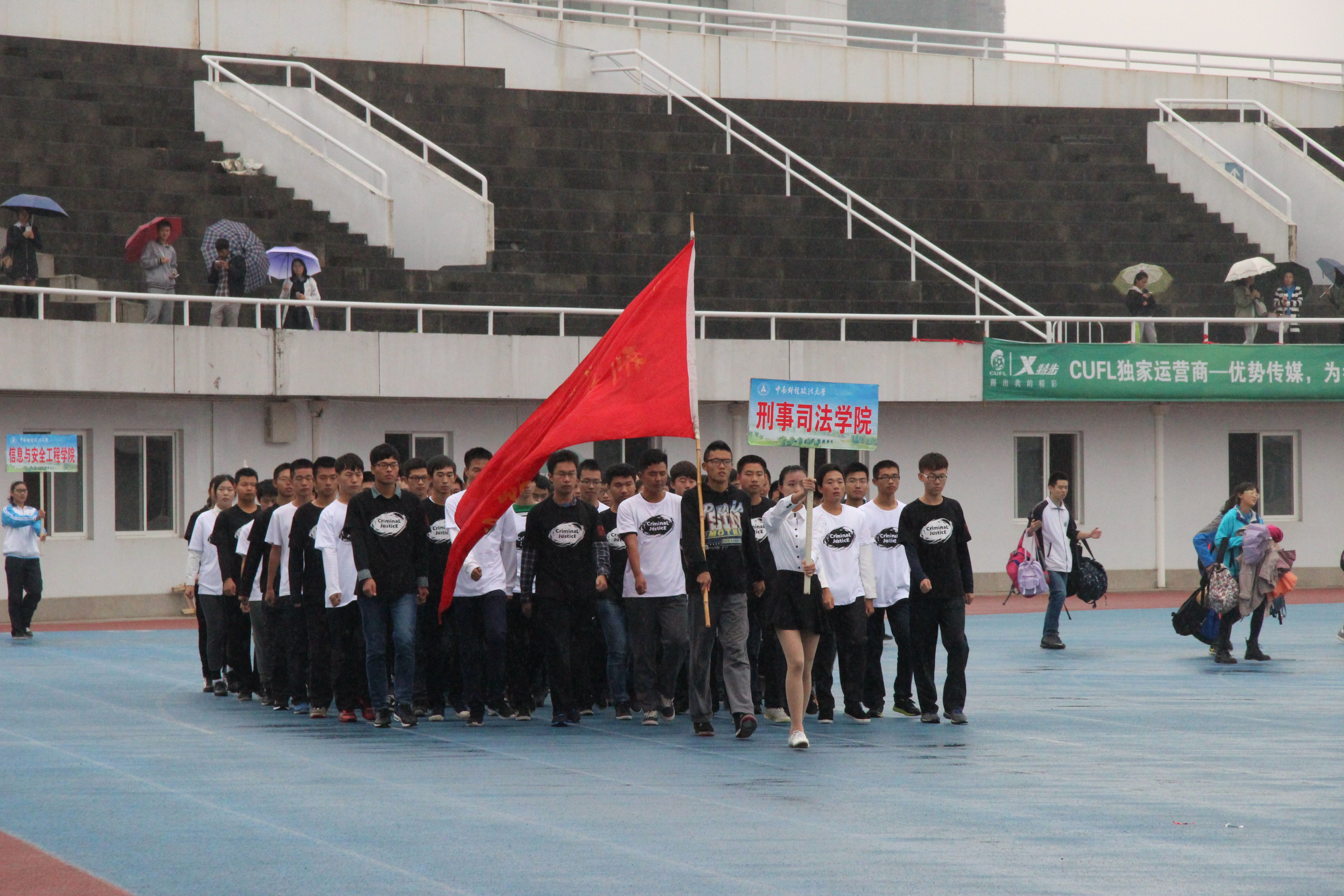 入场式上,瓢泼大雨丝毫没有影响运动员的热情,各院精心编排的方阵也各具特色。本次我院方阵采用了醒目的黑白色彩搭配,象征着五子棋盘,也体现着我院方方正正做人、坦坦荡荡做事的处世原则。而刑司健儿们迈着整齐的步伐,伴着嘹亮的口号走过主席台,则展现出了我院学子严谨务实、激情无限的精神风貌。