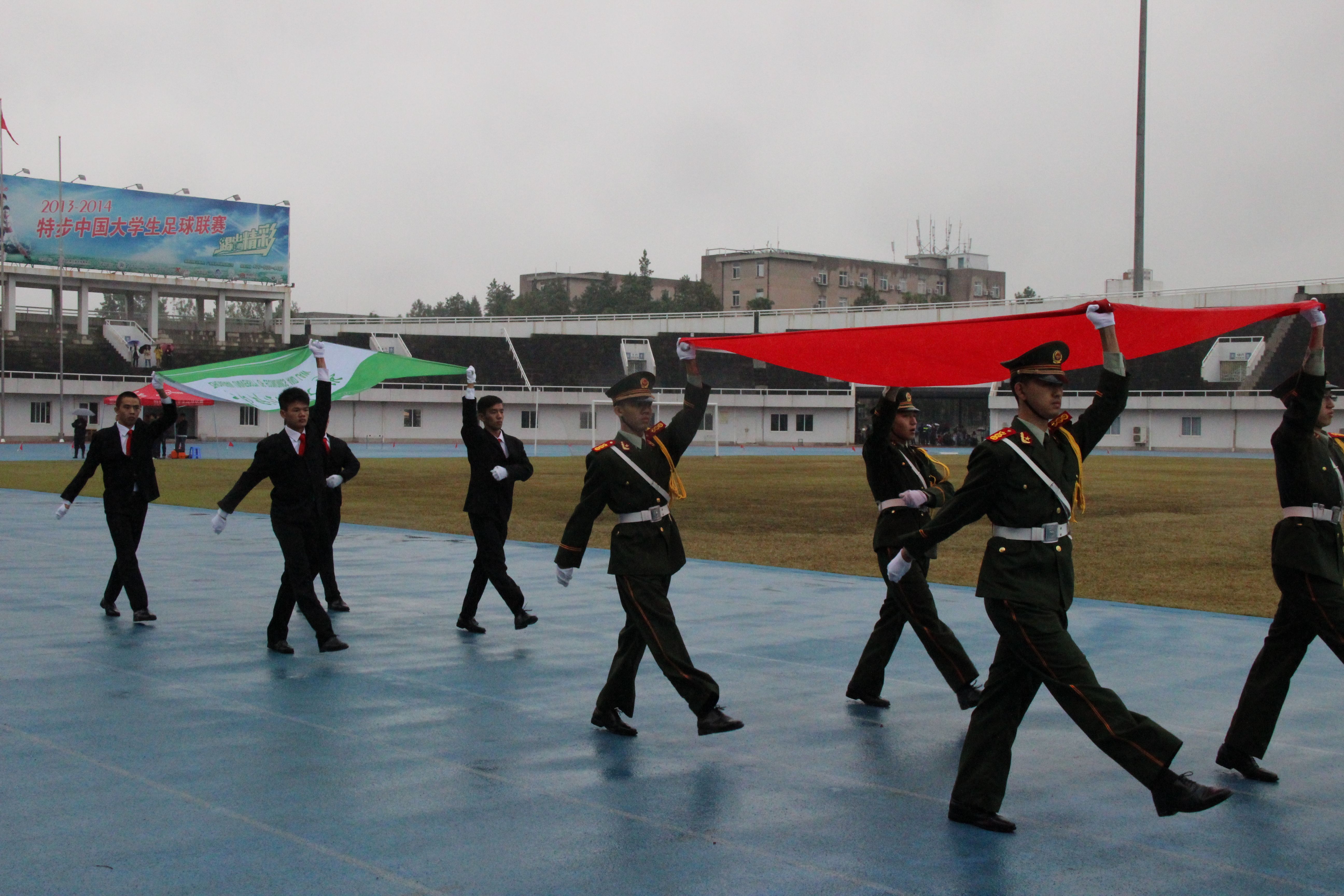 10月30日,在我校举办的2014年秋季田径运动会上,校国旗护卫队在副队庞万腾的带领下顺利完成了本次开幕式的仪仗队任务。值得一提的是,我校国旗护卫队成立于2002年,是一支由校人民武装部和刑事司法学院共同建设,并与国防教育协会有深入合作,负责全校国旗升降仪式及各项大型活动礼仪任务的学生队伍。