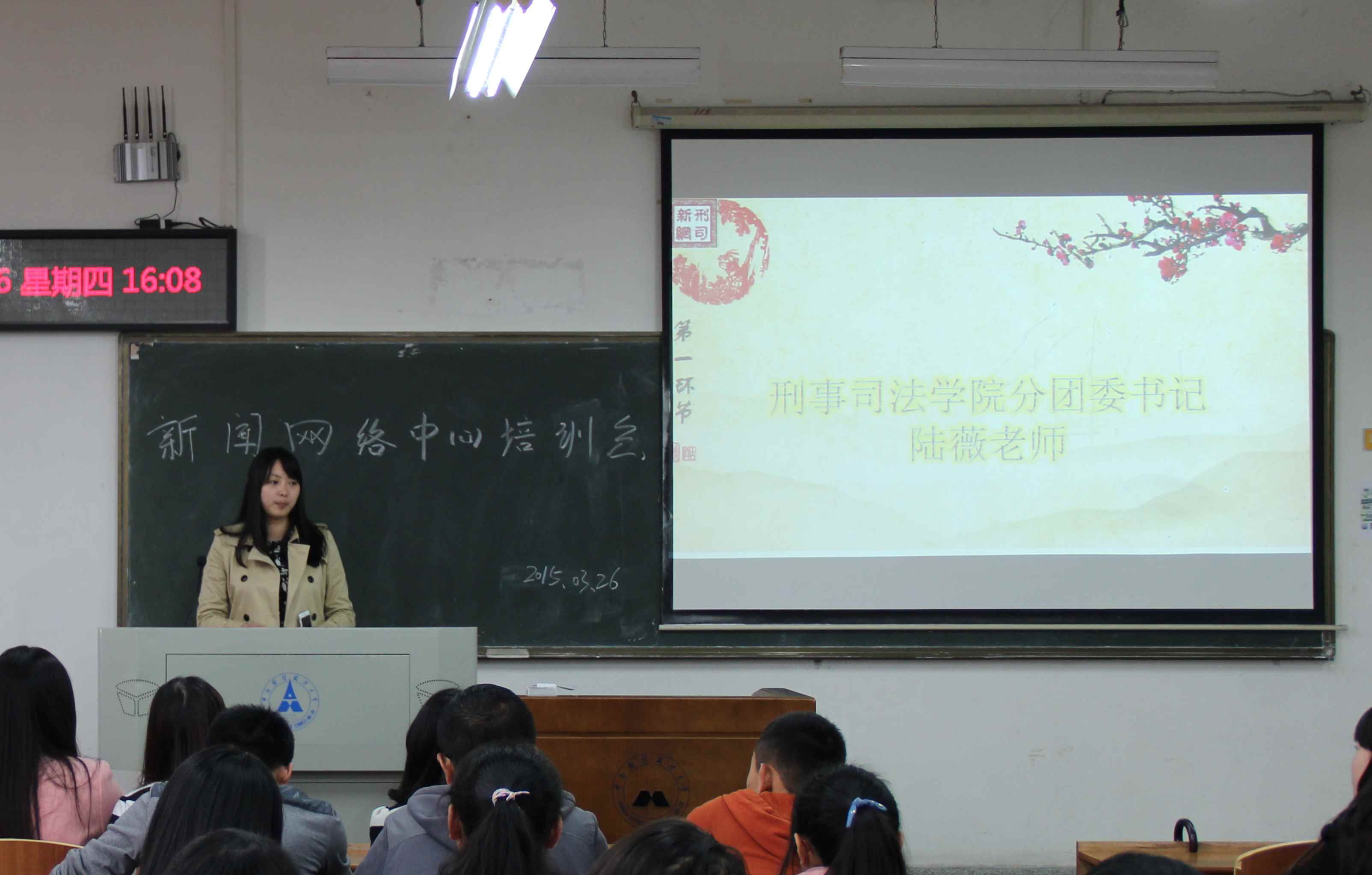 (通讯员 李铭恒、陈沛欣、李钊)为进一步提高我院学生记者的业务能力,3月26日下午2点整,我院新闻网络中心于文澜308教室召开培训会议。院分团委书记陆薇出席本次例会。
