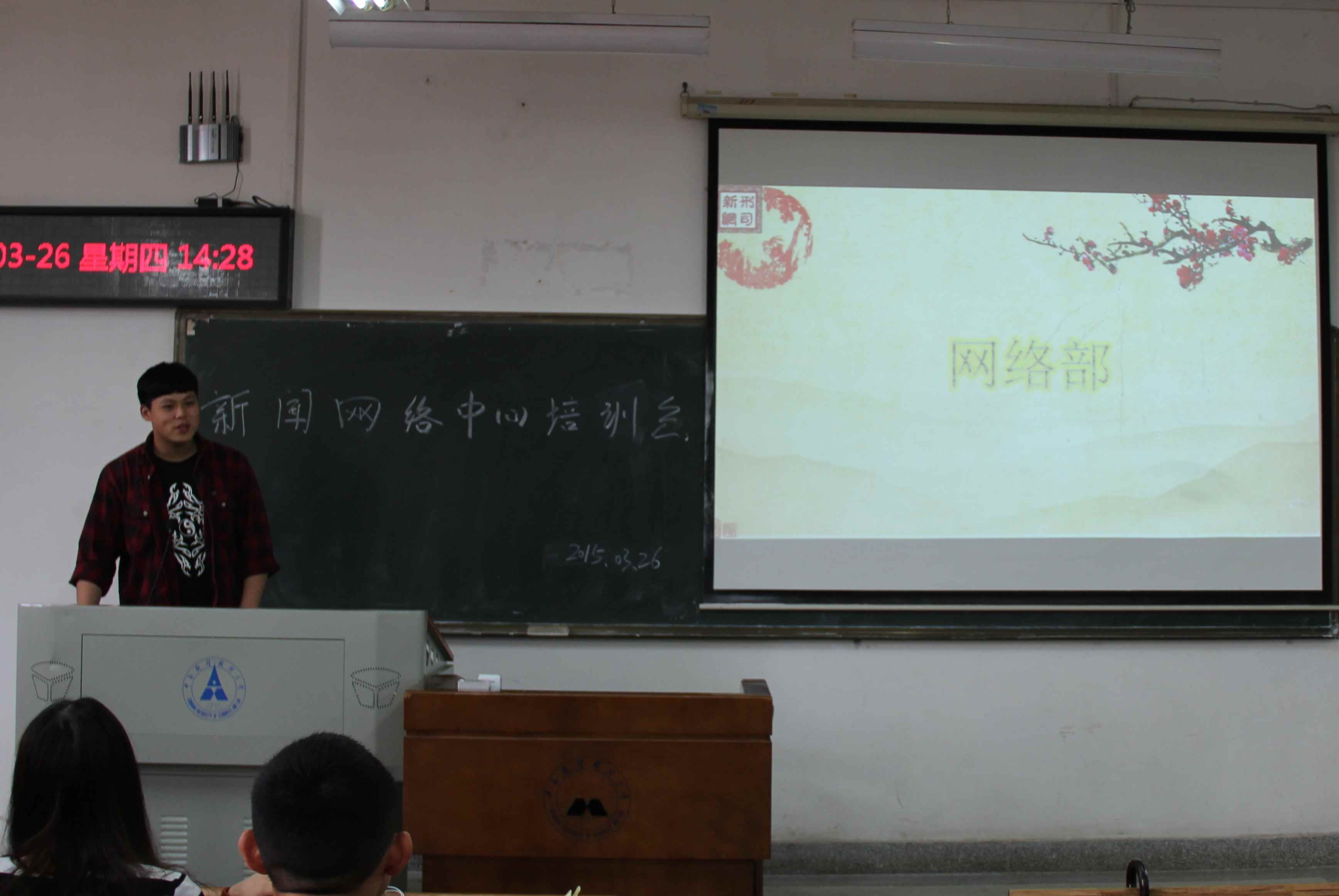 培训工作由记者团、编辑部、网络部的三位部长负责。记者团团长张沐恩强调,新闻标题要简明扼要、突出主题,新闻内容要丰富、切忌空话套话,文字描写要客观、避免主观色彩浓重的语句。编辑部部长陈海敏结合学生记者、编辑在日常新闻写作中常犯的错误,通过正面和反面举例,生动的为大家举行了一场培训,她强调了新闻报道中领导的排序和称谓问题,指出大家在新闻写作中爱用套话,如“至此,大会圆满结束。”等。网络部部长石昊旻则通过展示错误范例与优秀示例照片,强调了照片拍摄中人物取景、拍摄角度和光线的重要性。