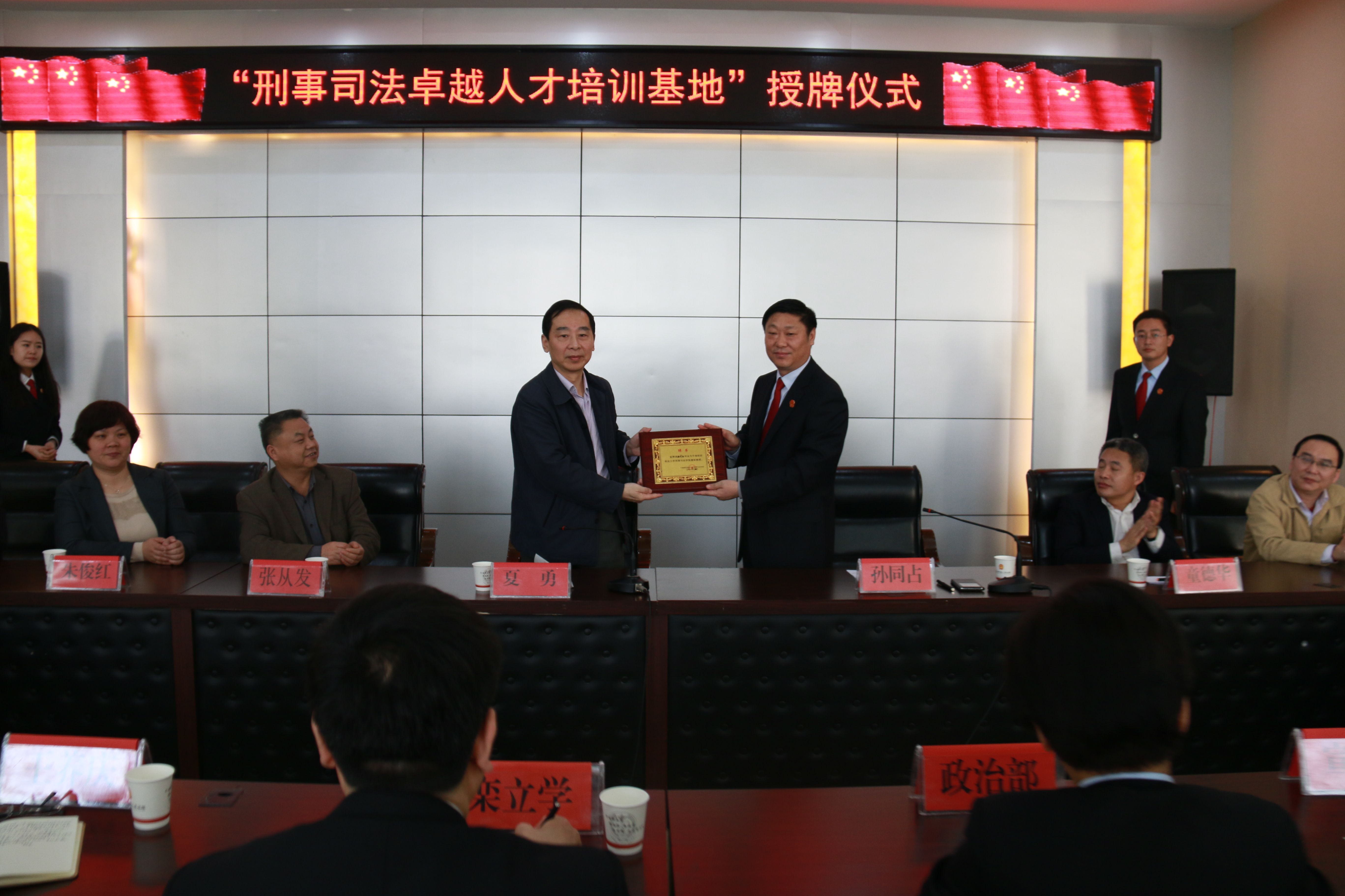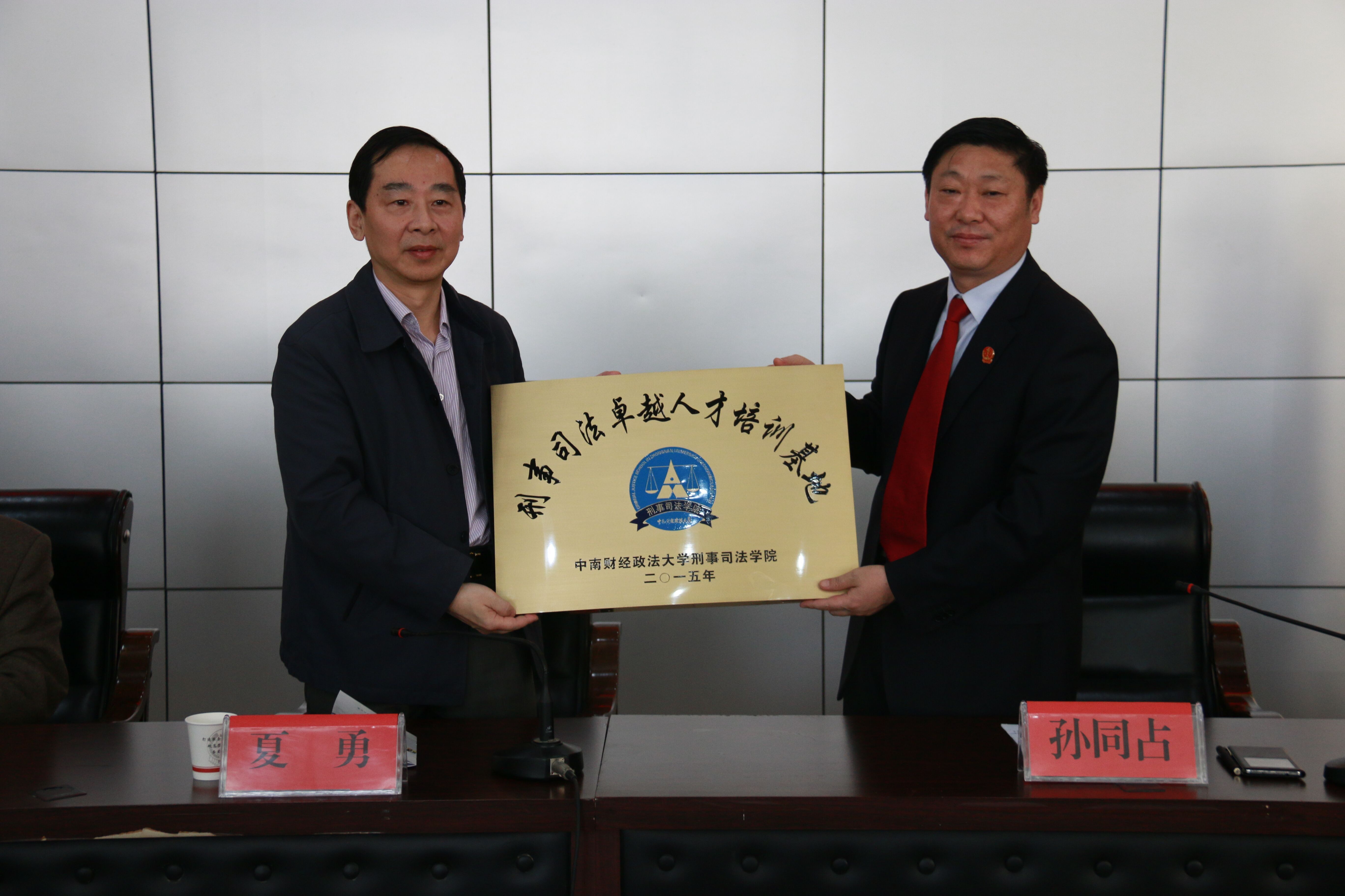 2015年4月24日上午,中南财经政法大学刑事司法学院“刑事司法卓越人才培训基地”在河南商丘中级人民法院正式挂牌成立。刑事司法学院院长夏勇、党委书记张从发、副院长童德华,商丘中院领导孙同占、杜建华、栾立学、王养庆和相关中层正职人员出席了授牌仪式。仪式由商丘中院党组副书记、常务副院长杜建华主持开展。