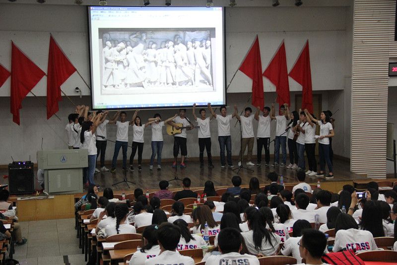 大赛正式开始,各班代表都向大家详细地介绍了班服的设计理念,各班同学都着各自班服为大家表演了精彩的节目。每个节目都歌颂五四精神,充满活力,向大家展示了当代青年的靓丽风采,获得了大家的阵阵掌声。其中,边管1401班的用全班学生名字拼成的中国地图令人拍案叫绝。他们的表演由“《死水》单人朗诵”、“《红烛》集体朗诵”、“《在太行山上》合唱”、“《友谊地久天长》合唱(吉他、小提琴、口哨伴奏)”四部分组成,向我们体现了边管班团结友爱的同学之情,展示了刑司人继承经典、心怀历史的精神风貌。最终,边管班以93,5分的优异成绩拔得头筹。其他班级均表现不俗,取得了不错的成绩。治安1401班由于组织得力,获得了“优秀班级”奖。