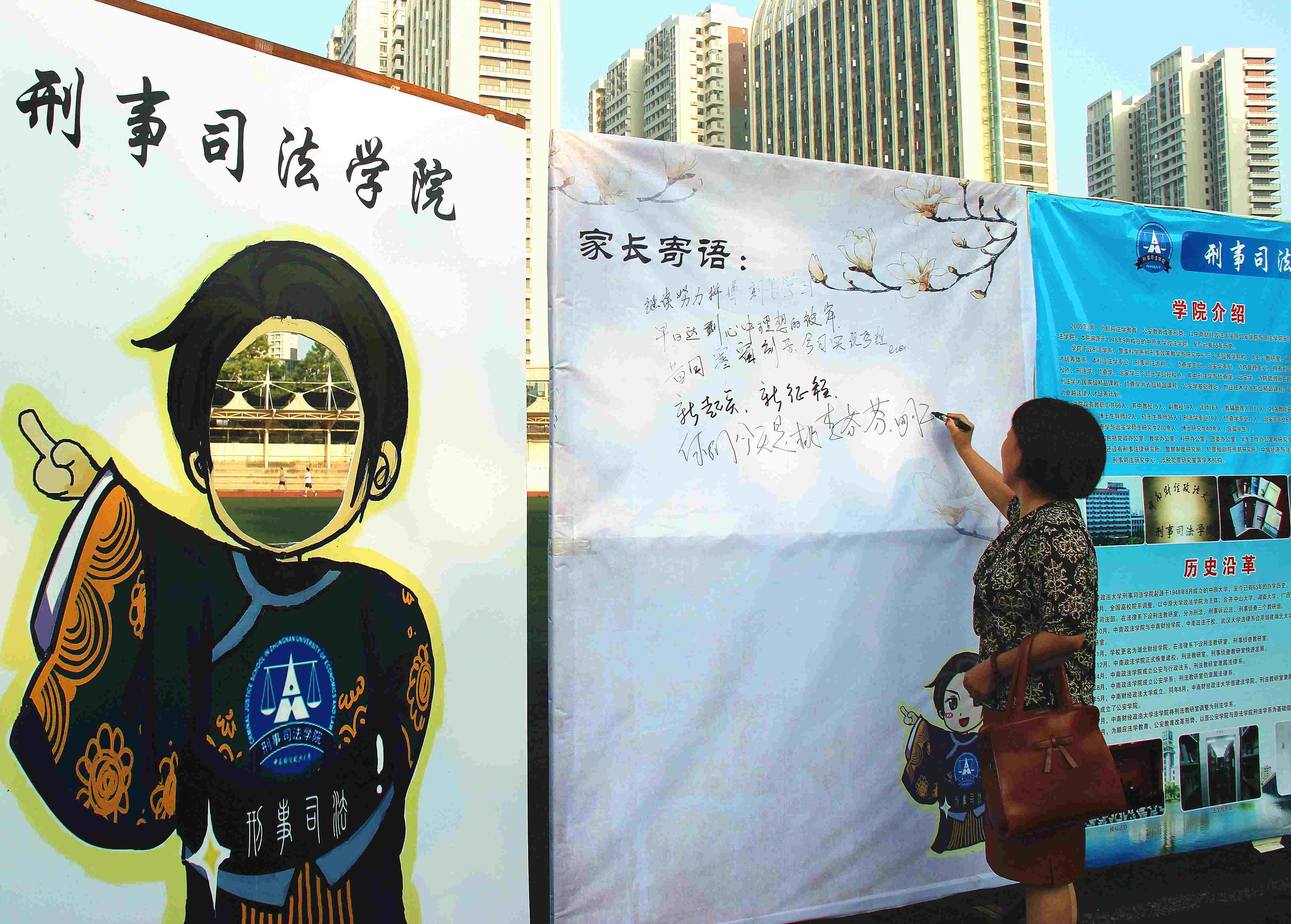 本次迎新学院还特别设立了官方微信“刑司君”的人形立牌,开展了“人人都是刑司君”的主题活动,以供大家合影留念,帮助新生们尽快产生学院认同感。同时,还设立了“家长留言板”,让送新生入学的家长们写下对自己孩子的期待与叮嘱。