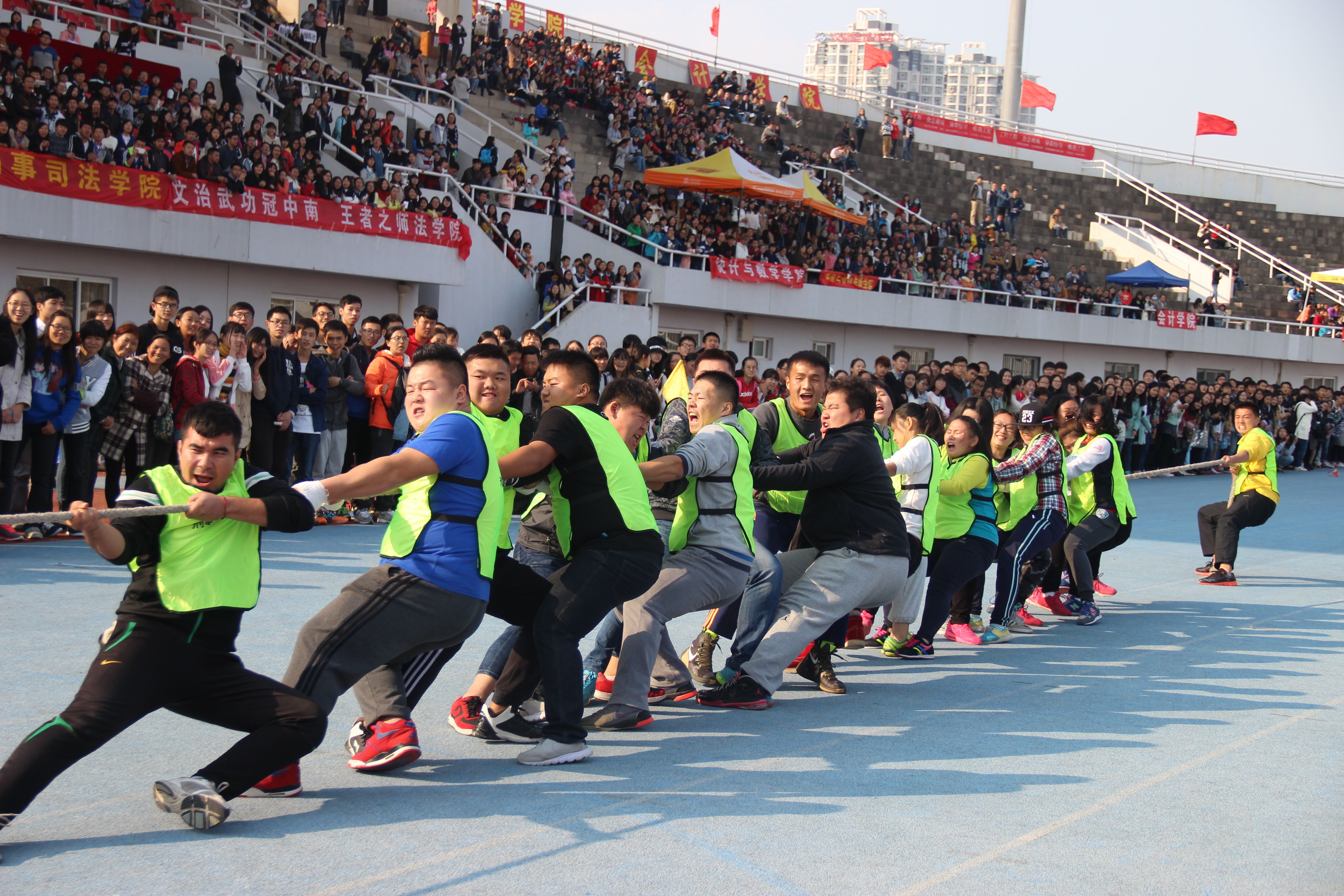 下午2时,拔河比赛重磅登场。哨声响起,队员们紧握长绳,压住重心、咬紧牙关,在现场观众充满热情的呐喊助威中,铆足了劲拼命往后拉。虽然在两轮比赛中不敌法学院和公管学院,但刑司学子团结一致的精神也令人折服。