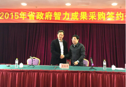 2105年11月9日下午,湖北省政府智力成果采购项目采购签字仪式在湖北军威酒店举行。湖北省政府研究室卢美松副主任,刘纯志副主任,及省政府咨询委员会办公室李天祥主任等出席了签字仪式。