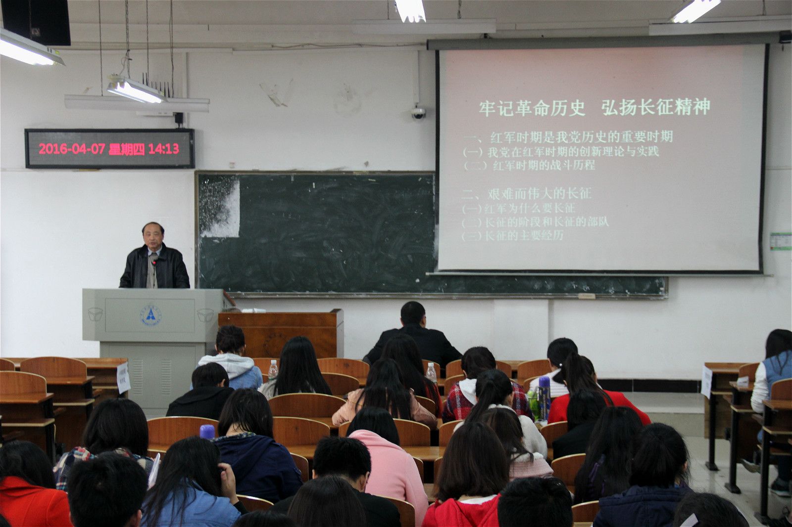 本次活动的主讲人为经济学院的胡江斌教授。在本次授课中,他讲述了我党在红军时期理论与实践不断完善的过程,叙述了我党在红军时期五次 反围剿的史实和长征的奋斗历程,总结了长征的伟大意义和影响,深深地打动了现场的同学。他的讲话使在座的人感受到了长征精神的伟大,从而更加珍惜当下生 活。同时更让每一个人明白,我们学习马克思主义并不只因我们是党员、是团员,更是因为马克思主义是真正的科学。