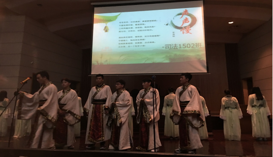 大赛在司法二班的《声声慢》中拉开了帷幕,“寻寻觅觅,冷冷清清,凄凄惨惨戚戚。”表演者声情并茂,生动形象的表现出诗人孤独寂寞的忧郁情绪和悲苦哀伤的心境,极富艺术感染力,引发了现场观众的阵阵掌声。
