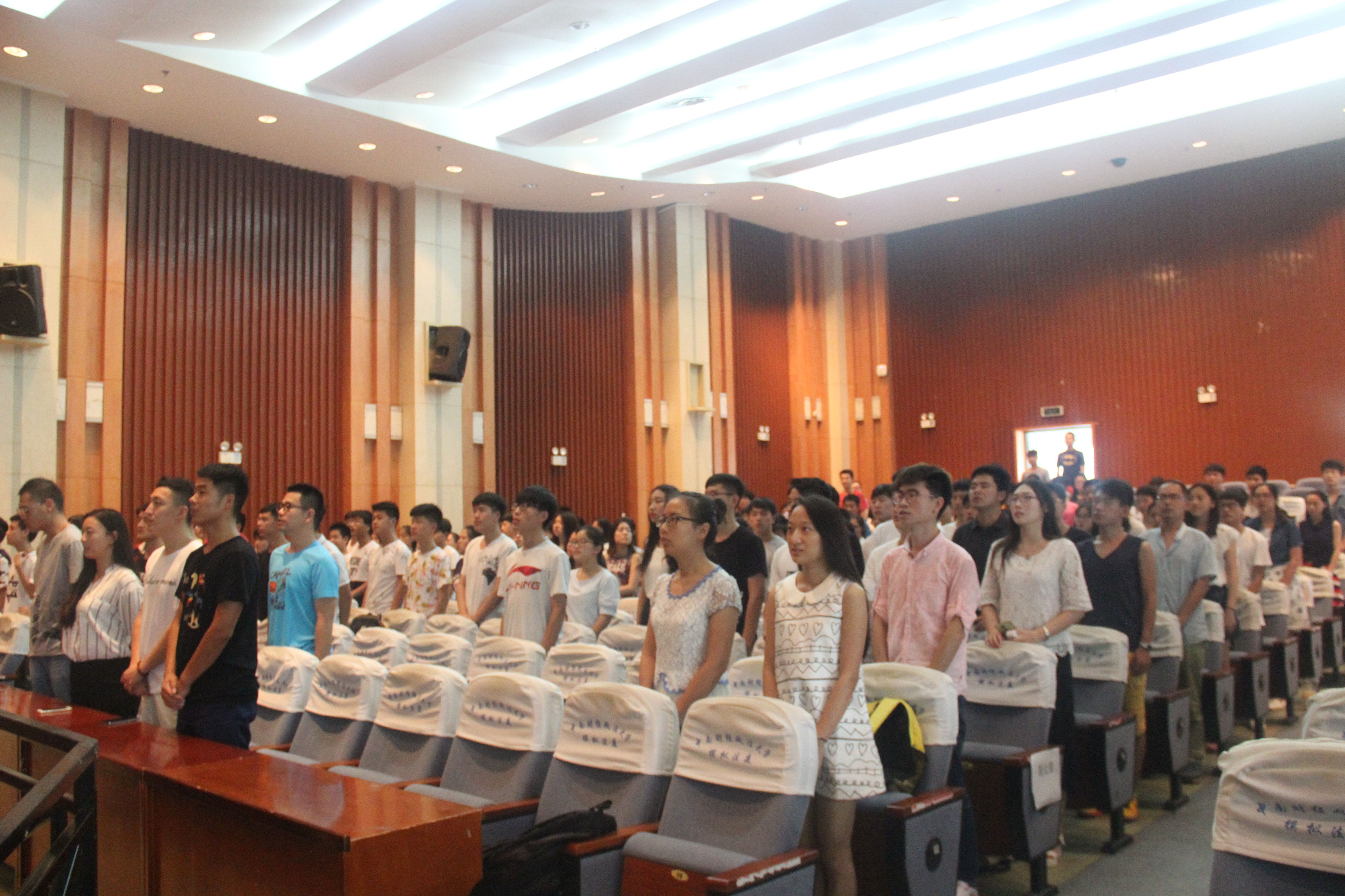 会议以奏唱国歌的形式拉开序幕,营造了庄严肃穆的气氛。首先,分团委书记陆薇老师上台发言。陆老师肯定了过去一年中团学新志所取得的成就,感谢了13级、14级学生干部的辛勤付出,同时表达了对新干事的深切期盼。陆老师鼓励团学新志的成员们在未来生活中要注重对自己能力的锻炼,正确面对老师的批评建议,始终保持对工作的热爱。陆老师希望大家学会奉献,勇于担当,巩固师兄师姐们在往年工作中取得的成果。团学新志干部既然作为学生的楷模,就更要严于律己,注重自己的品行,做事公正做人客观,遵守校纪校规。同时也希望大家能够在以后的团学新志活动中完善自我,增长才干,提升综合素质,以饱满的热情、昂扬的斗志开创刑司新局面。