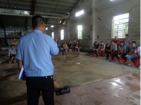 最近一周的工作基本围绕7月21日火灾的后续工作展开。7月26日,于辖区工业区内召开消防安全会议,与会人员达上百人,三和派出所及该村村委会主要领导出席会议,另新会区安全局局长莅临讲话,会议到场的企业负责人听取了各方领导的讲话,学习了消防安全配备标准以及安全整改意见。此次会议主要希望各企业负责人从7月21日火灾事件中吸取教训,认真负责地做好企业内的安全排查工作并积极整改,排除消防隐患,保证生产安全。