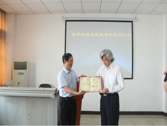 活动伊始,由胡向阳院长对余振华教授作简要介绍,齐文远副书记隆重地向余振华教授颁发聘书,他表达了对余振华教授的感谢及祝福期许,这也是我院“科教兴院、人才强教”发展战略在教师引入上的一大重要举措。