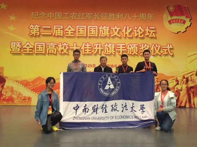 为庆祝中华人民共和国成立67周年暨中国工农红军长征胜利80周年,进一步传播国旗文化,树立当代大学生升旗手的先锋形象,由团中央学校部、全国学联秘书处主办,北京新风旗帜文化传播中心、中华人民共和国国旗网承办的第二届全国国旗文化论坛、全国高校十佳升旗手颁奖仪式暨第三届全国高校升旗手交流活动于2016年9月28日至10月2日在北京举行。在我校人民武装部、刑事司法学院等领导老师的亲切关怀和大力支持下,我校国旗护卫队代表包阳阳、代锦昭、张帆、颜廷杰、陈舫、周格格受邀作为志愿者赴京参加了本次活动。