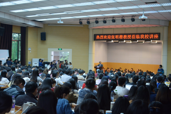 2016年10月14日下午15时30分,清华大学法学院教授、我国著名刑法学家张明楷教授应邀莅临我校,在文潭一楼报告厅为广大师生带来一场关于《刑法修正案(九)》立法理由评析的精彩讲座。讲座由中南财经政法大学刑事司法学院夏勇教授主持,刑事司法学院程红教授、郭泽强教授、夏朝晖副教授、丁友勤副教授、杨柳副教授等教师及来自武汉多所高校的数百名学生到场聆听了讲座。现场座无虚席,场面十分火爆。