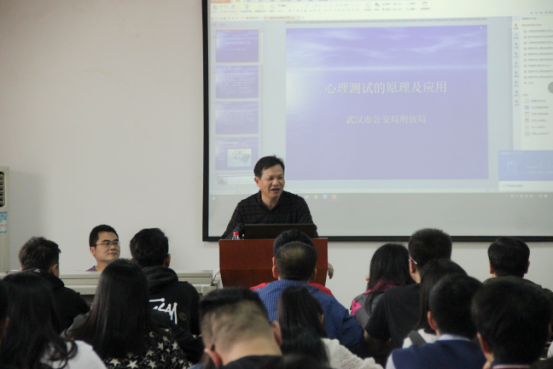 新闻网讯(通讯员王怡君)2016年10月17日下午两点三十分,中南财经政法大学刑事司法学院文治楼二楼会议室座无虚席,来自武汉市公安局刑事侦查局九大队三中队中队长、心理测试高级工程师蔡晓东警官,以“测谎仪和测谎——心理测试的原理与应用”为主题,为广大刑司学子进行了一场精彩纷呈的讲座。刑事司法学院院长胡向阳教授、副院长董邦俊教授,以及我院刘建华、杨立云、付凤老师等出席了本次活动。讲座由胡向阳院长主持。