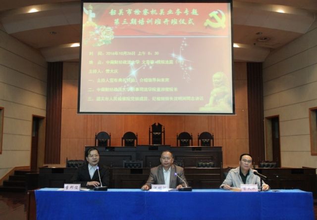 10月26日上午,为期7天的韶关市检察机关第三期业务专题培训班在我院隆重开班。韶关市人民检察院组织的市区两级检察院101名检察官参加了此次培训。韶关市人民检察院党组成员、纪检组组长沈明河同志,我院副院长董邦俊教授、培训中心主任曾大庆老师出席了此次开班典礼。