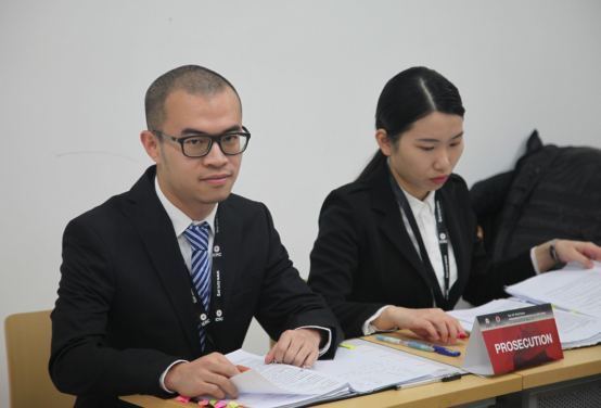 在八强竞争赛中,面对有外国专家指导的传统强队上海交通大学,我校作为控方,凭借优秀的团队合作能力、出色的现场发挥水平、过硬的法律知识及素养,获得三位法官的一致赞赏,轻松挺入四强。