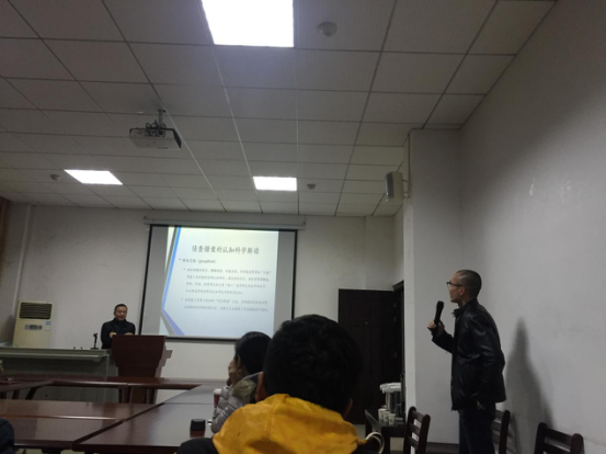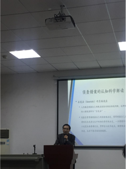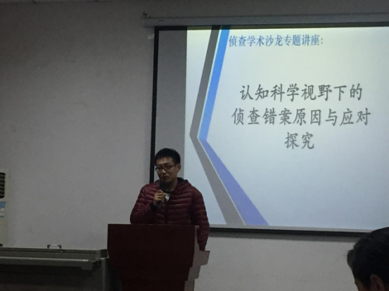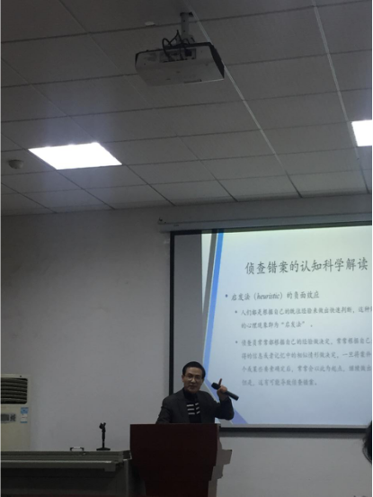 随后,周睦棋老师宣布学术沙龙活动正式开始,杨立云副教授在大家热烈的掌声中上台,讲述了“认知科学视野下的侦查错案原因与应对探究”的相关问题。杨立云副教授访美留学归来不久,他首先就在美国的见闻进行了介绍,语言生动幽默,内容引人入胜。杨立云老师说:“今天跟大家交流的这个题目是我所参与的一个教育部人文社科类项目中的研究问题,错案在当下社会引起广泛关注,且其本身影响很大,侦查机关在司法活动中有重要地位,因此对侦查错案的研究是一个好的切入点,也有理论和实践意义。”接着,杨立云老师分别介绍了什么是侦查错案、侦查错案原因的认知科学解读以及针对错因的应对,讲解层次清晰,理论明确,同学们纷纷表示获益匪浅。