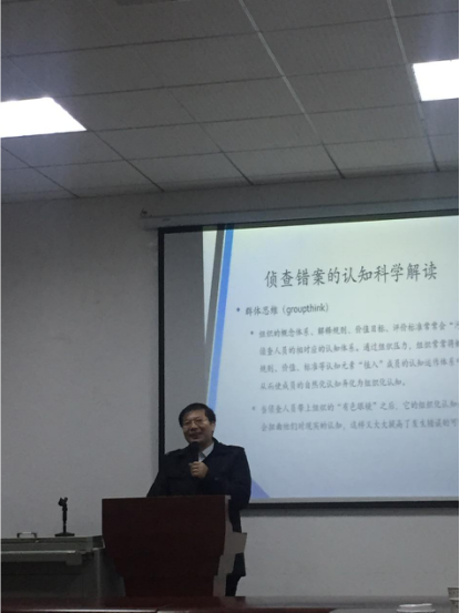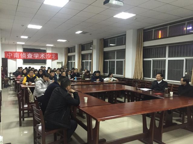 2016年12月1日晚七点,在中南财经政法大学刑事司法学院文治楼二楼会议室成功举办了以“认知科学视野下的侦查错案原因与应对探究”为主题的侦查学术沙龙活动。此次活动由我院杨立云副教授主讲,杨宗辉教授、副院长董邦俊教授、徐惠老师以及栾兴良老师出席了本次活动。我院周睦棋老师作为这次学术沙龙活动的负责人之一全程主持。刑事司法学院广大侦查学研究生积极参与其中,活动现场精彩纷呈。